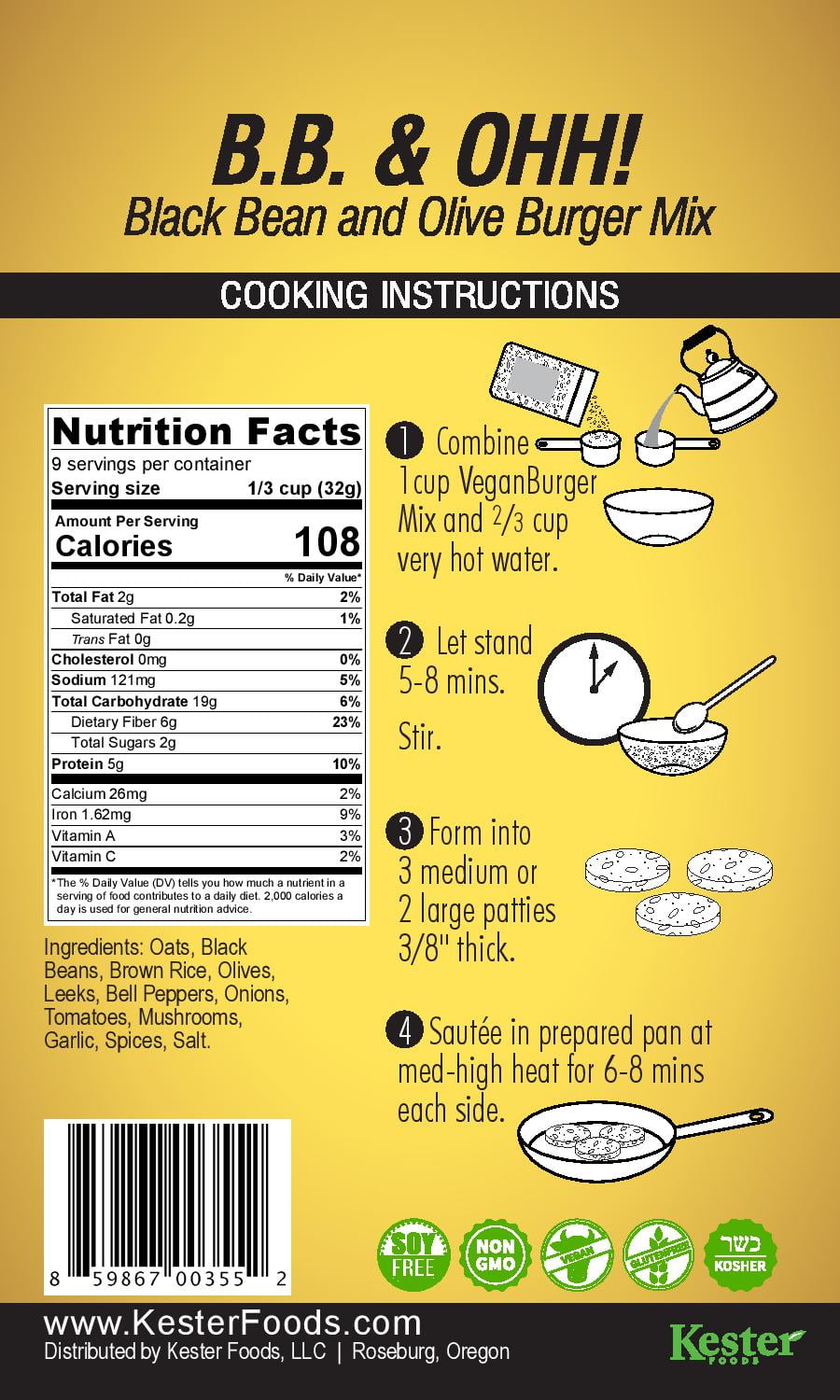 Vegan Burger (9 Servings): B.B.& Ohh! Black Bean and Olive Mix