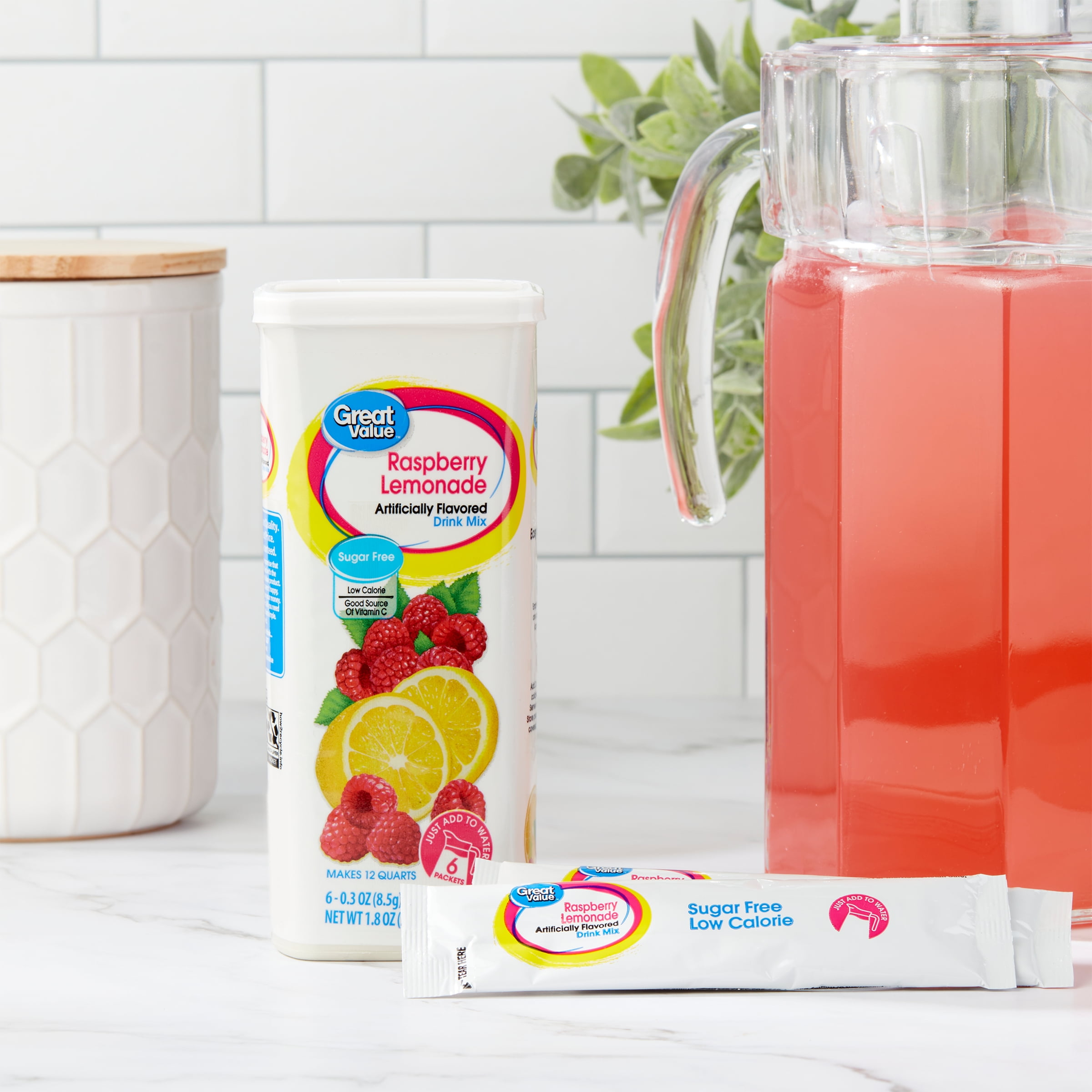 Great Value Sugar-Free Drink Mix Raspberry Lemonade, 0.3 Oz, 6 Ct