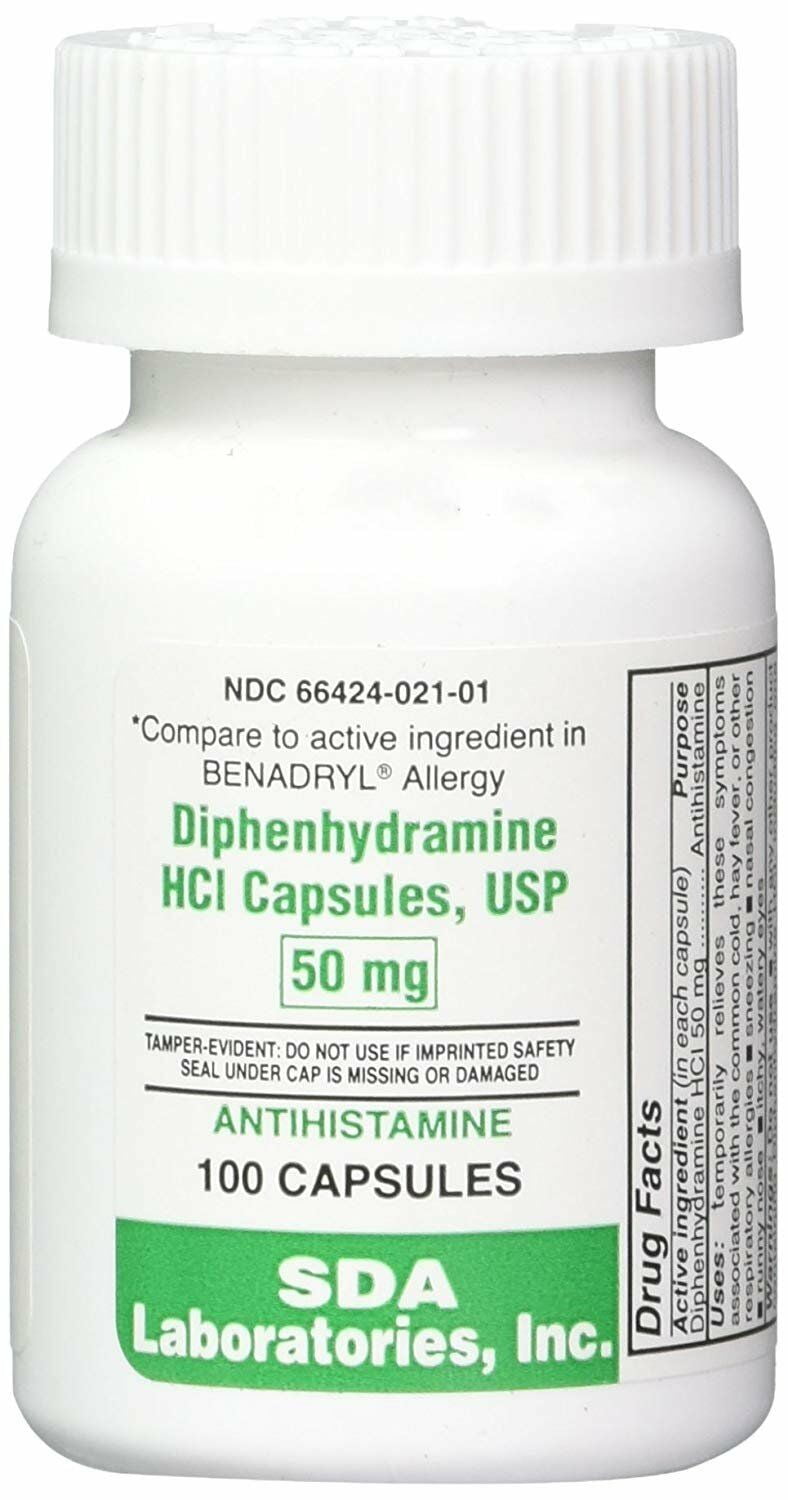 SDA Laboratories Allergy Diphenhydramine Capsules 50mg 100 Each