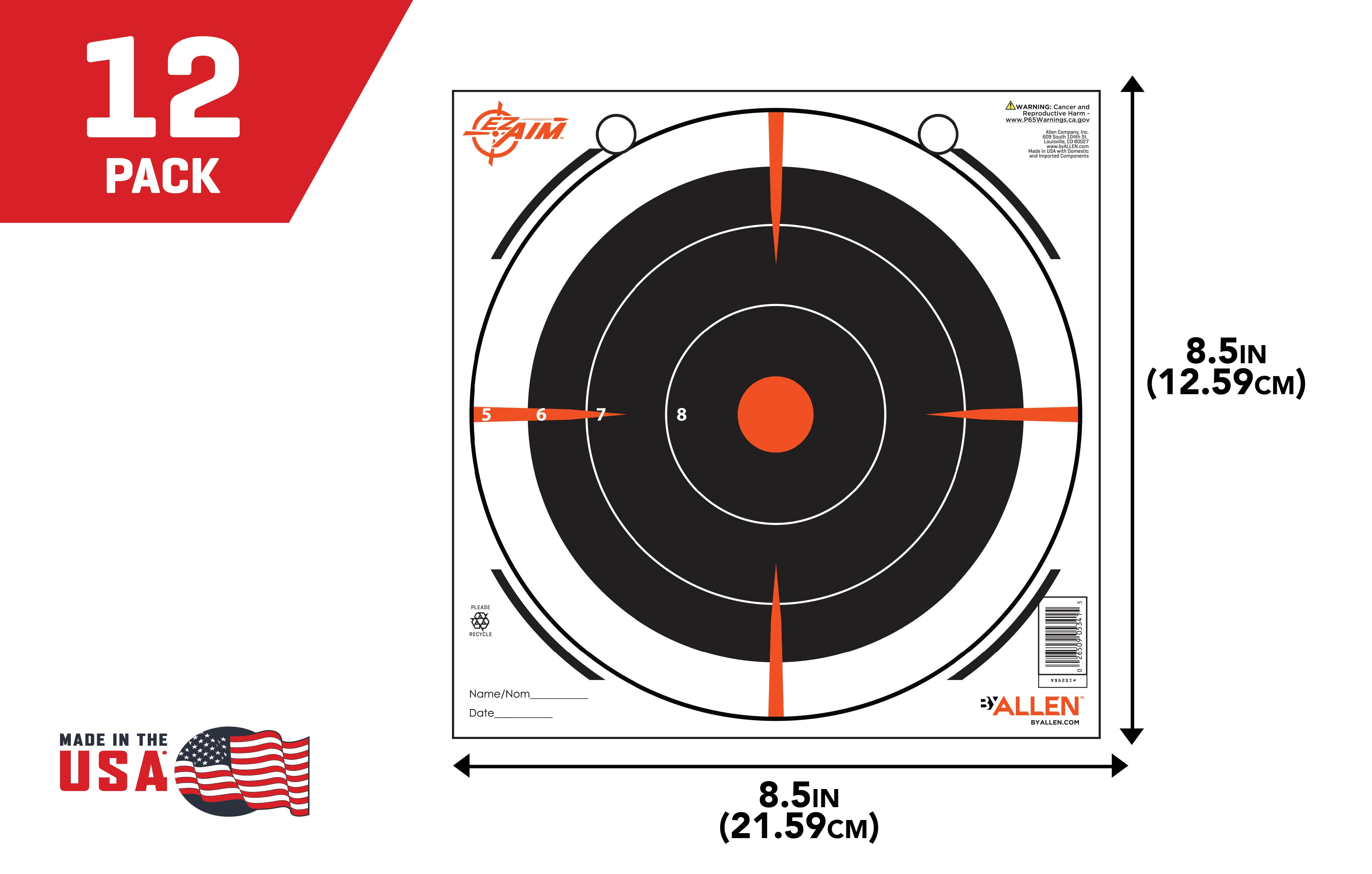 EZ Aim 8′ Square Bullseye Shooting Paper Targets, 12-Pack, Black/Orange