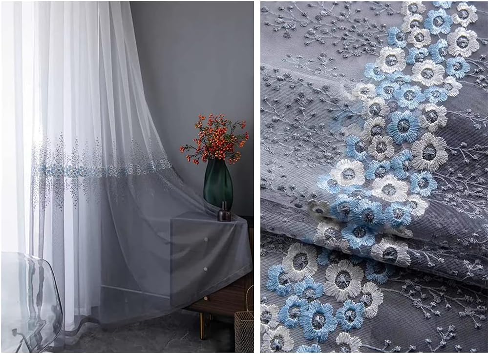 Semi Sheer Voile Cotton Linen Curtain Purple Floral Drapes Bedroom Living Room Window Curtains; Semi Sheer Voile Purple Floral Drapes Living Room Window Curtains