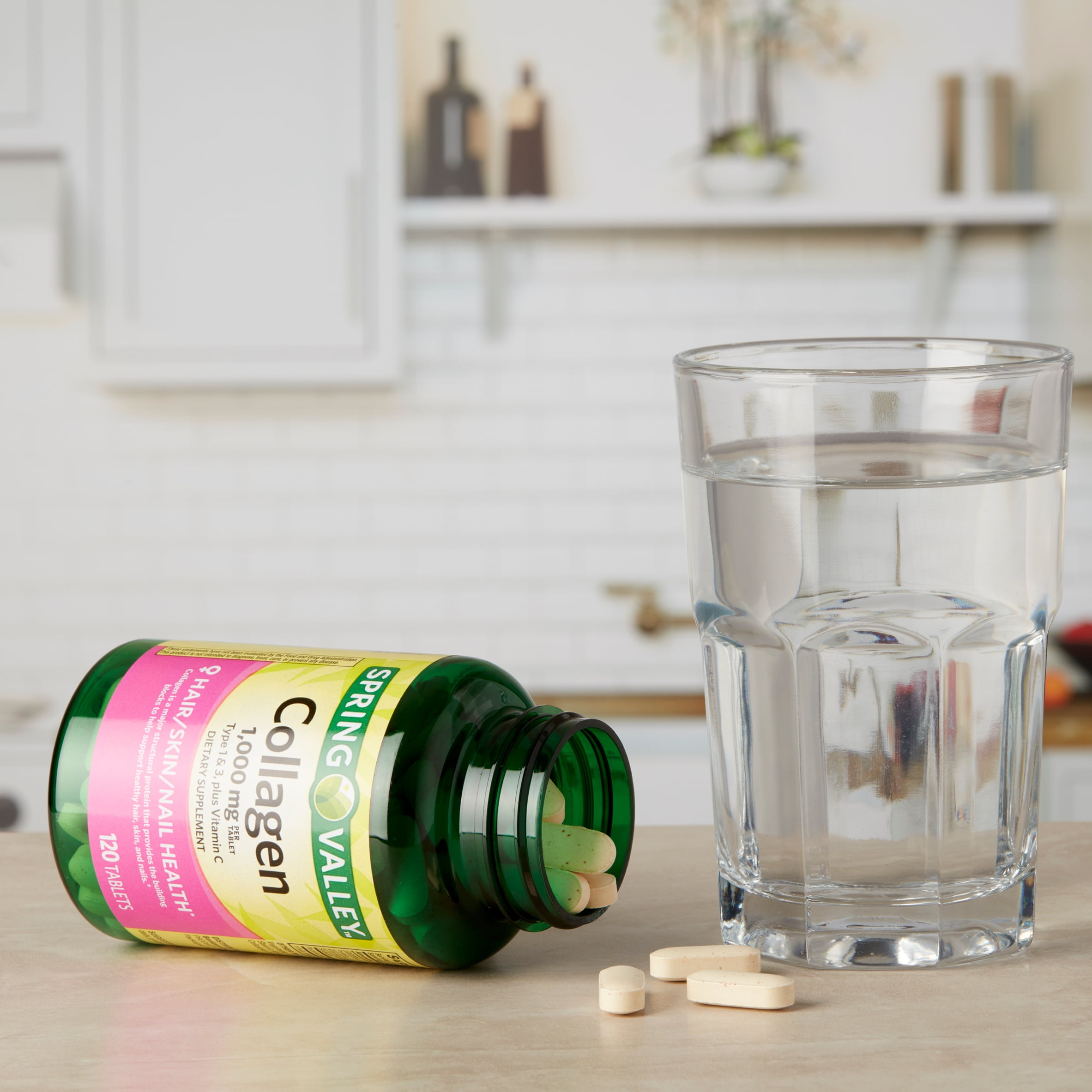 Spring Valley Collagen Type 1 & 3, Plus Vitamin C Dietary Supplement, 1,000 mg, 120 count