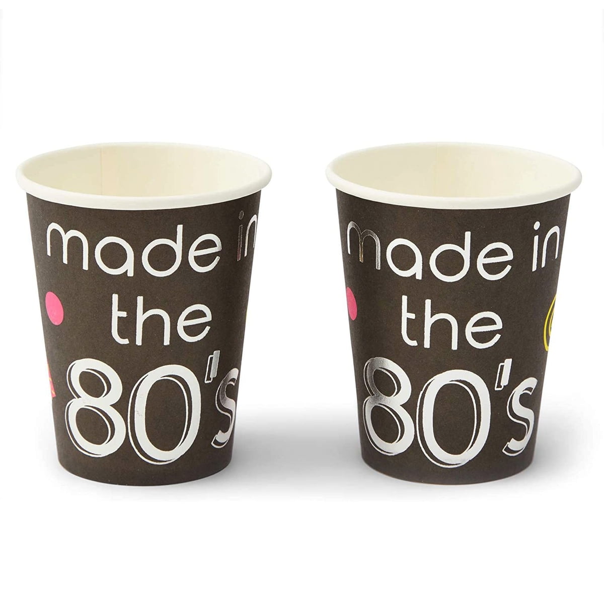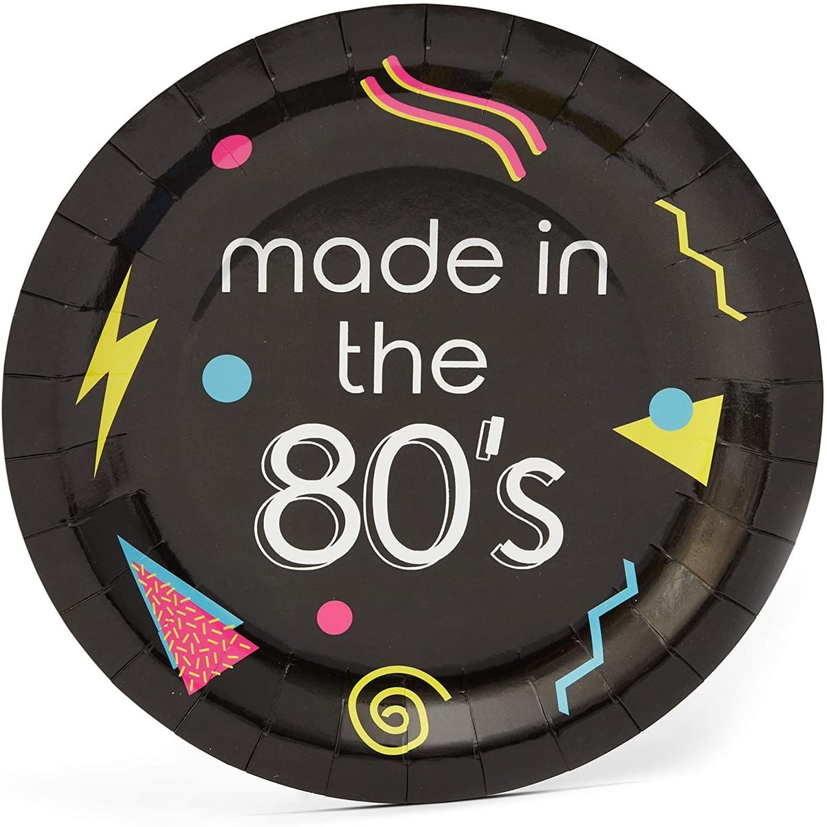 - 80s Party Decorations: Our disposable tableware features bright geometric shapes and “Made in the 80’s” printed in the center; ideal for an upcoming retro party, 1980’s party, or hip hop party