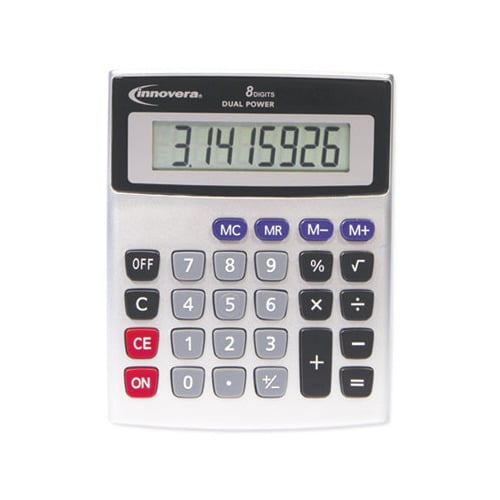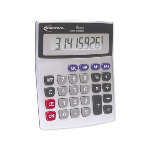 Ideal for everyday calculations, this desktop calculator adds up to a great office essential. Dual solar/battery power provides reliable functionality in all lighting conditions. Angled display prevents overhead glare and eyestrain. Easily solve other equations with the Square Root, /- Switch, and Percent keys. Power Sources: Battery Solar Display Notation: Numeric Number of Display Digits: 8 Display Characters x Display Lines: 8 x 1.