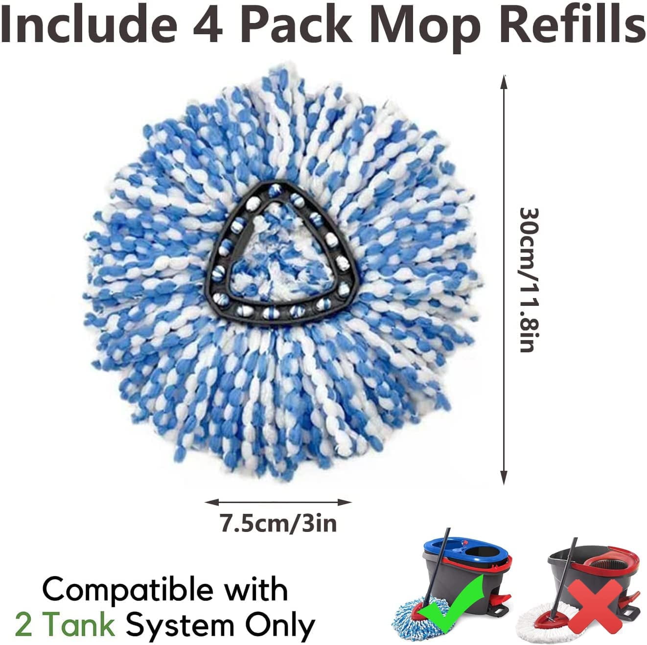 2 Pack Mop Head Refill, KZKR Microfiber Spin Mop Replacement Compatible with rinse clean 2-Tank System Mop Replace Refills