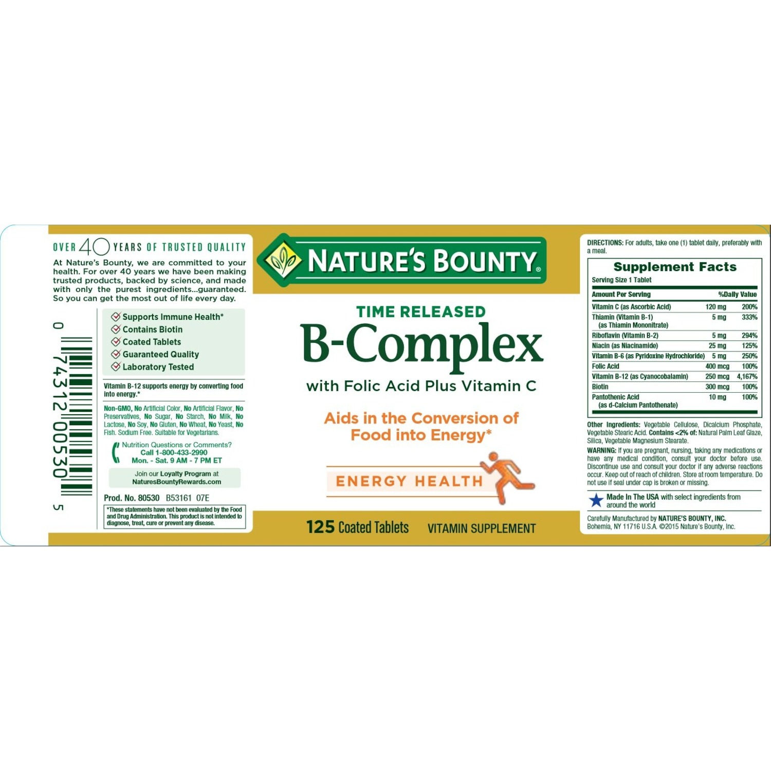 2 Pack Nature’s Bounty B-Complex with Folic Acid plus Vitamin C Tablets 125 Each