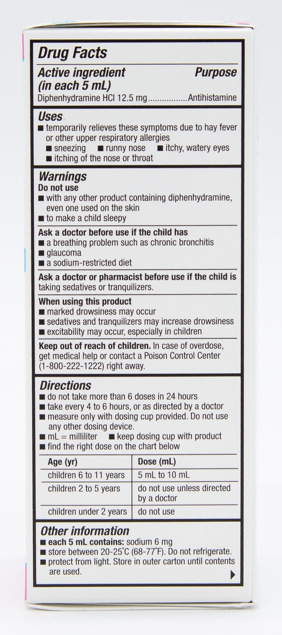 - Children’s Allergy Liquid Antihistamine, for ages 6 to 11.