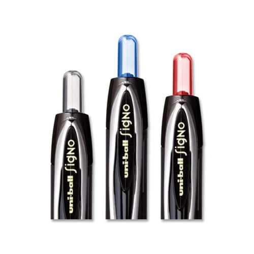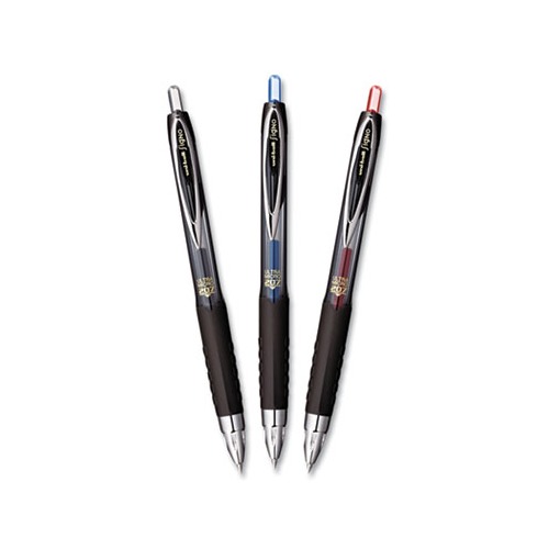 Stock your office, home or classroom with 207 Retractable Gel Pens from uni-ball featuring a 0.38 mm ultra micro point with a stainless steel tip that resists bending and breaking. Even-flowing, pigment-based gel ink delivers a smooth writing experience for intense, vibrant lines, ensuring that every mark is brilliantly communicated. Use these retractable gel pens for everyday writing tasks, check signing and all of your important signatures, trusting its quick-drying uni Super Ink. Innovative uni Super Ink technology effectively entraps the gel ink into the paper, producing fraud, fade and water-resistant documents that resist check washing or bleaching. The 0.38 mm ultra micro point produces neat and precise strokes for intricate writing, making it easy to create super fine details in your drawings and diagrams. A textured grip offers greater comfort and control as you continue writing, while a translucent ink window indicates the level of gel ink remaining, so you don’t run out unexpectedly. The sleek design of the 207 with modern metal accents gives the retractable gel pen a stylish touch. Pen Sub-Brand & SKU Line: 207 Signo Gel Ultra Micro Pen Style: Retractable Pen Type: Gel Pen Refillable Yes/No: No.