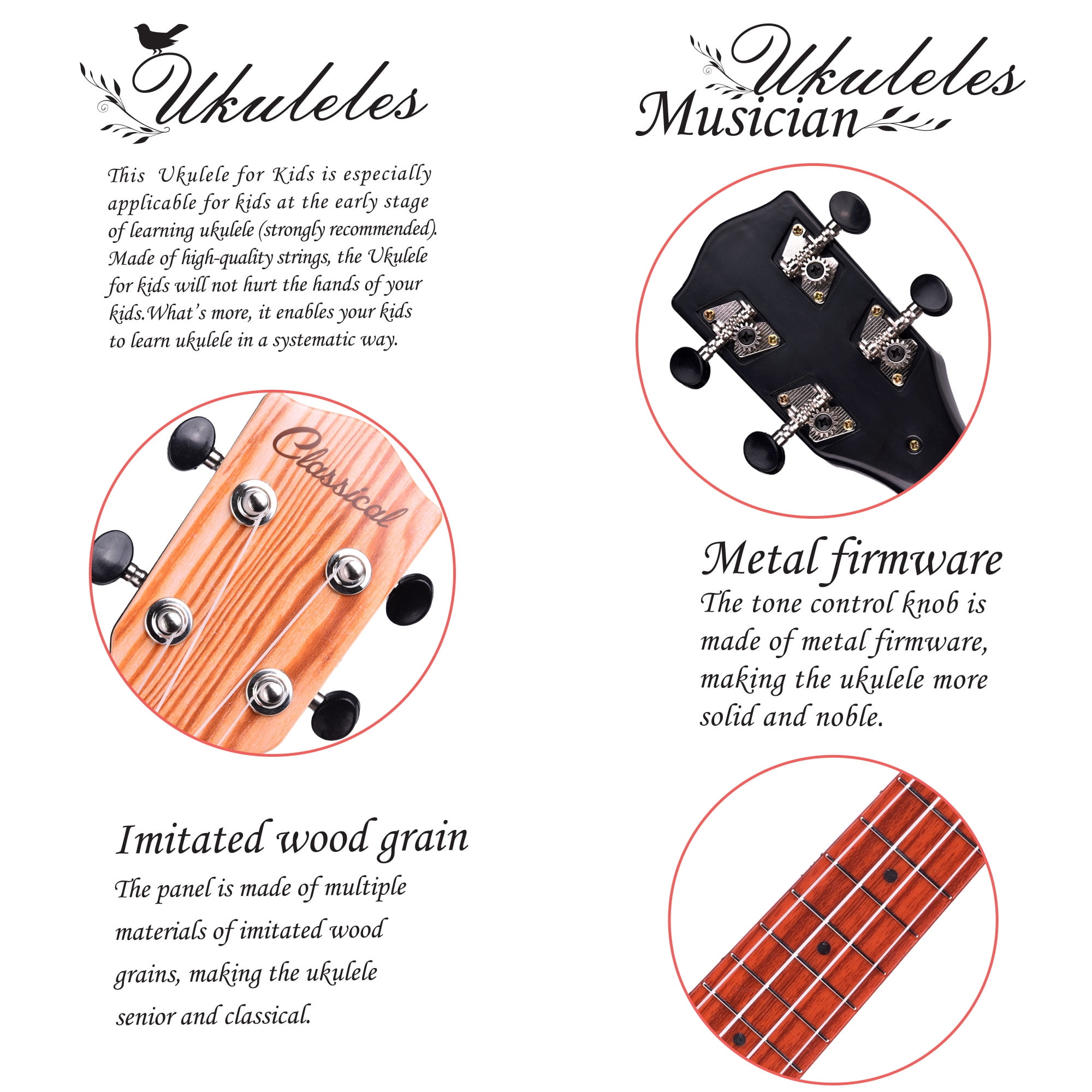 21Inch Basswood Ukulele Starter Kit with G with Strap, Picks and Tutorial,Learning Educational Toys for Boys and Girls, Guitar for Kids