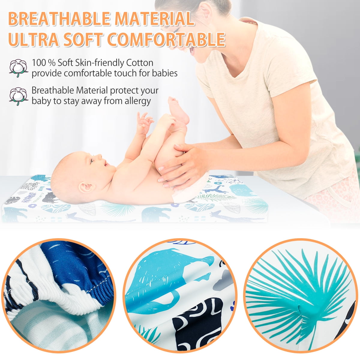 - [Easy to Install and Wash]: We know how hard for moms to have a nursery baby. We’re here to help. An elastic bottom band can keep the changing table sheets in place, and smooth fit the changing pad. Apply it on the changing pad within seconds, machine washable, feel free to wash it. You can choose cold water and gentle cycle mode.
