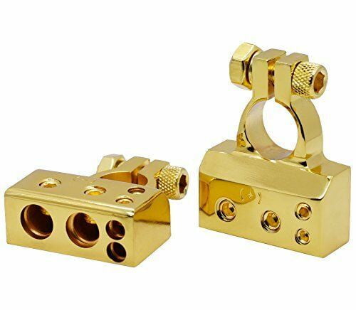 Absolute 2/ 4 / 8 Gauge AWG Car Battery Terminal Gold Positive & Negative Set
