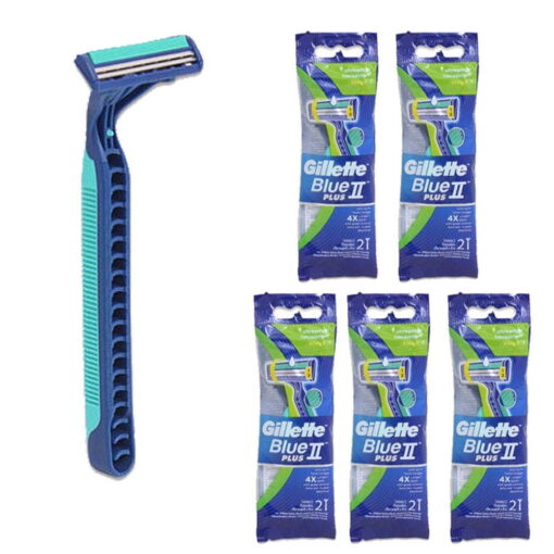 5 Packs Gillette Blue II Plus Disposable Razor Pivot 2 Blade Unisex 10 Razors