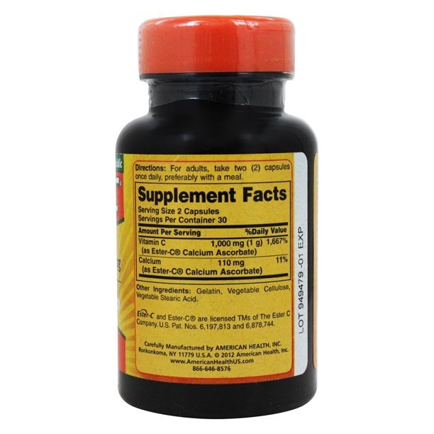 American Health Ester-C 500 mg. – 60 Capsules American Health Ester-C 500mg. is a breakthrough patented formula that contains naturally-occurring Vitamin C metabolites and is quickly absorbed. American Health Ester-C’s unique manufacturing processneutralizes pH, making it gentle on the digestive system. American Health Ester-C delivers advanced antioxidant protection, remaining active in the immune system for up to 24 hours! 24-Hour Immune Support A recent clinical study showed that Ester-C increased vitamin C levels in the body for up to 24 hours. White blood cell levels of Vitamin C were elevated in subjects receiving Ester-C when measured 24 hours after initial dose. The presence of key metabolites such as threonate have been shown to be responsible for this increased level and retention of Vitamin C by the cells. No other patented vitamin C brand can make this claim!