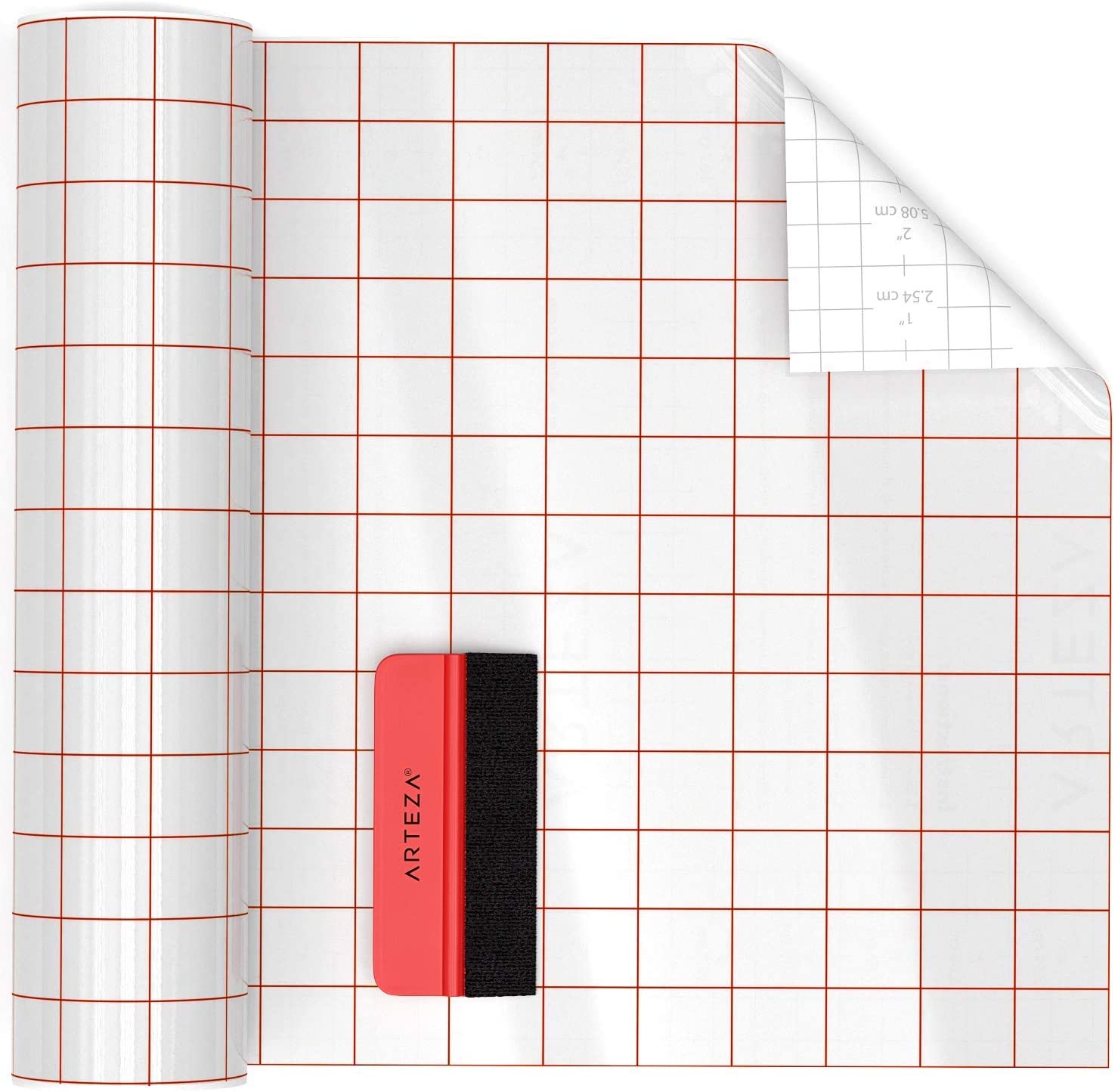 Arteza Transfer Tape, Clear, Medium Tack, 12"x25" (ARTZ-8917): Quick & Effortless Release – Enjoy vinyl transfer tape that unwinds easily and won’t curl, tunnel, or wrinkle. Get the Perfect Alignment – This transfer tape for vinyl is printed with a 1" alignment grid to minimize mistakes. For a Variety of DIY Crafts – Use this transfer tape to apply your self-adhesive vinyl to mugs, glass, phone cases, signs, and more. Squeegee Included – Smooth out bumps and air bubbles for a professional-looking finish. Arteza makes art supplies affordable to creators with every budget.
