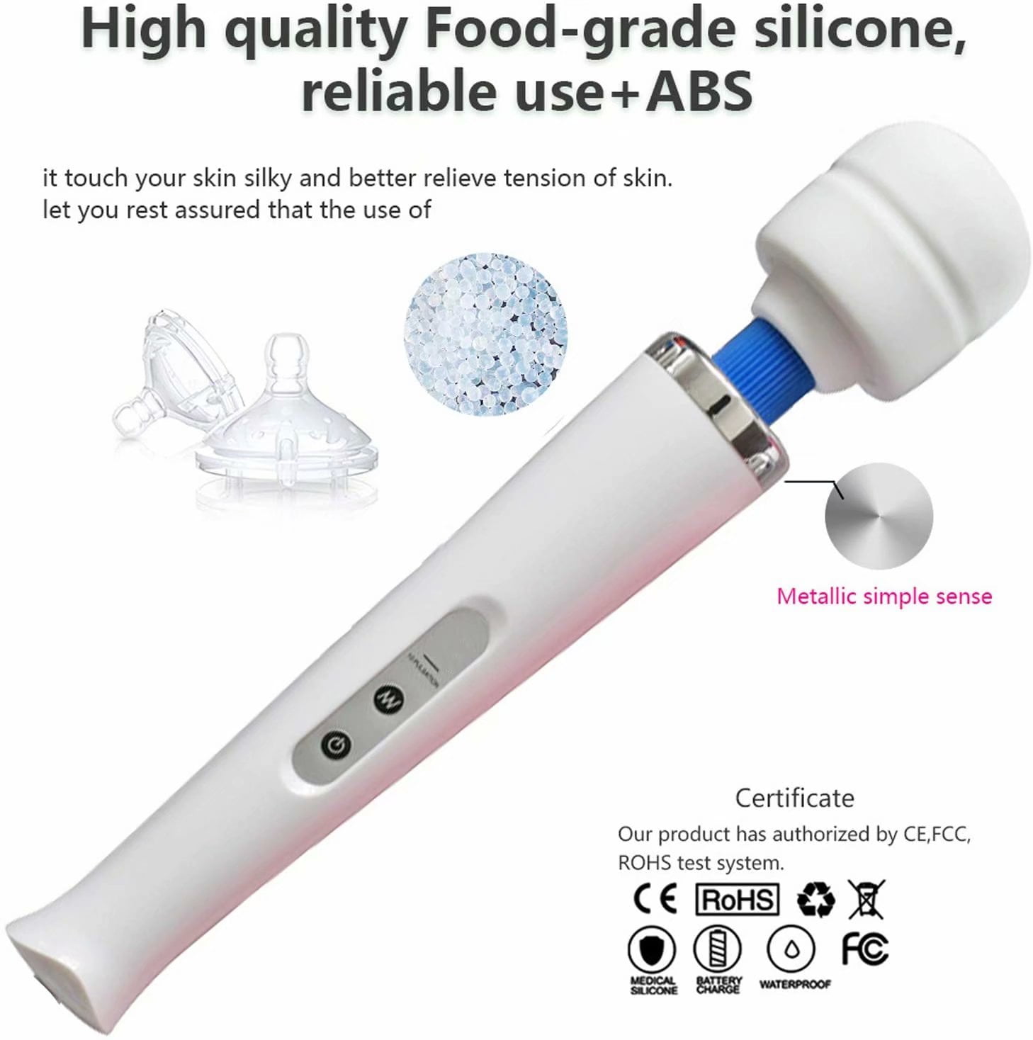 - Soft Silicone Head – Personal wand massager features a soft-touch silicone head. So even though the vibrations are powerful, it feels delightfully soft against your skin.
