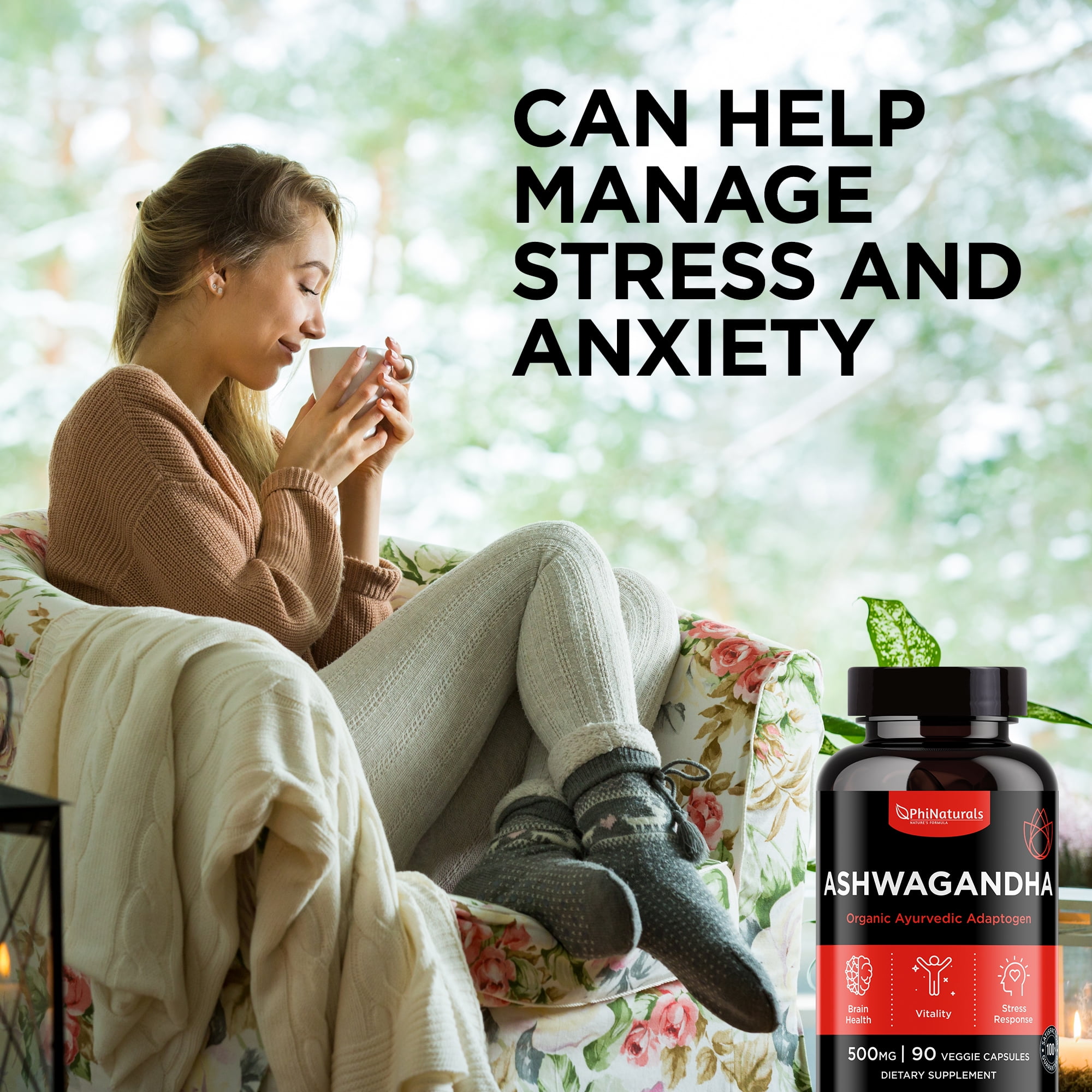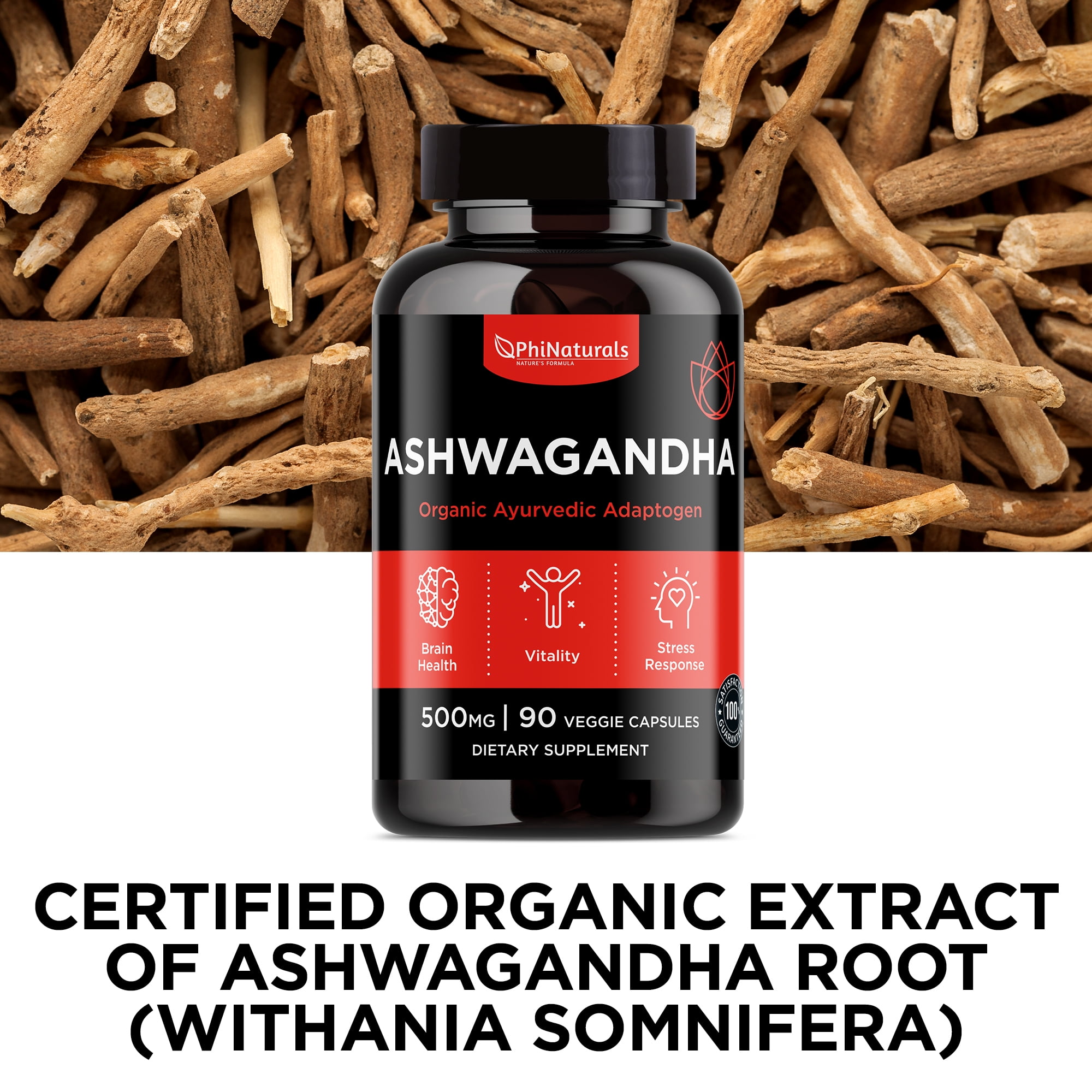 Supports physical and mental energy, helps with a healthy response to stress, with the management of chronic inflammation and may help you sleep better. Adrenal, immune, anxiety and thyroid support.Phi Naturals Ashwagandha Organic Herbal Supplement 500mg 90 Capsules