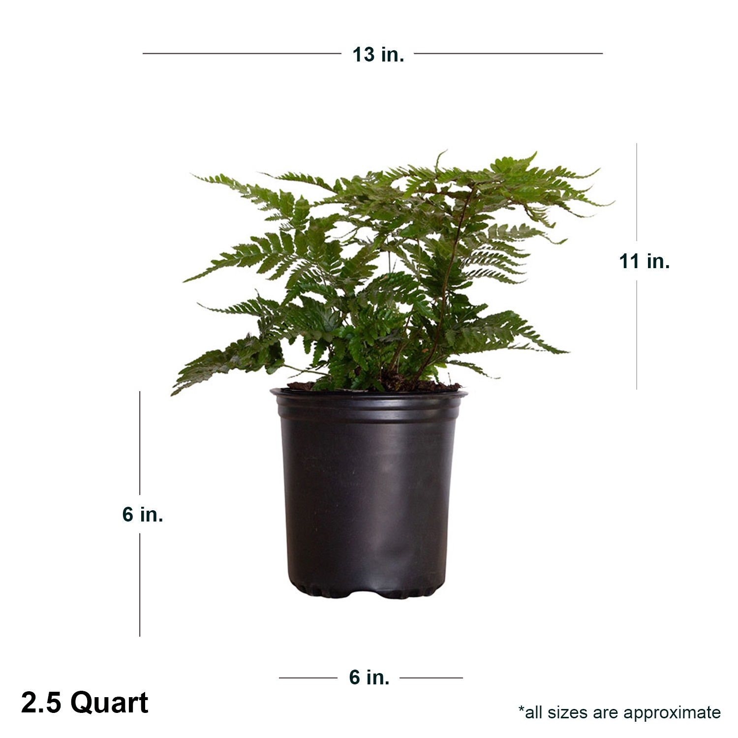 Autumn Fern is a herbaceous perennial which spreads by underground stems. The new growth is a tremendous coppery-red and green which eventually turns green when it matures. It is great specimen to plant in a container or in woodland gardens where it can be allowed to spread and grow into a solid mass. When planting this fern, dig the hole twice as wide as the pot and mix rich garden soil in with your native soil, then leave the top of the root ball 1/2 inch above the ground level when filling the hole with soil. Use a slow release granular fertilizer in spring.