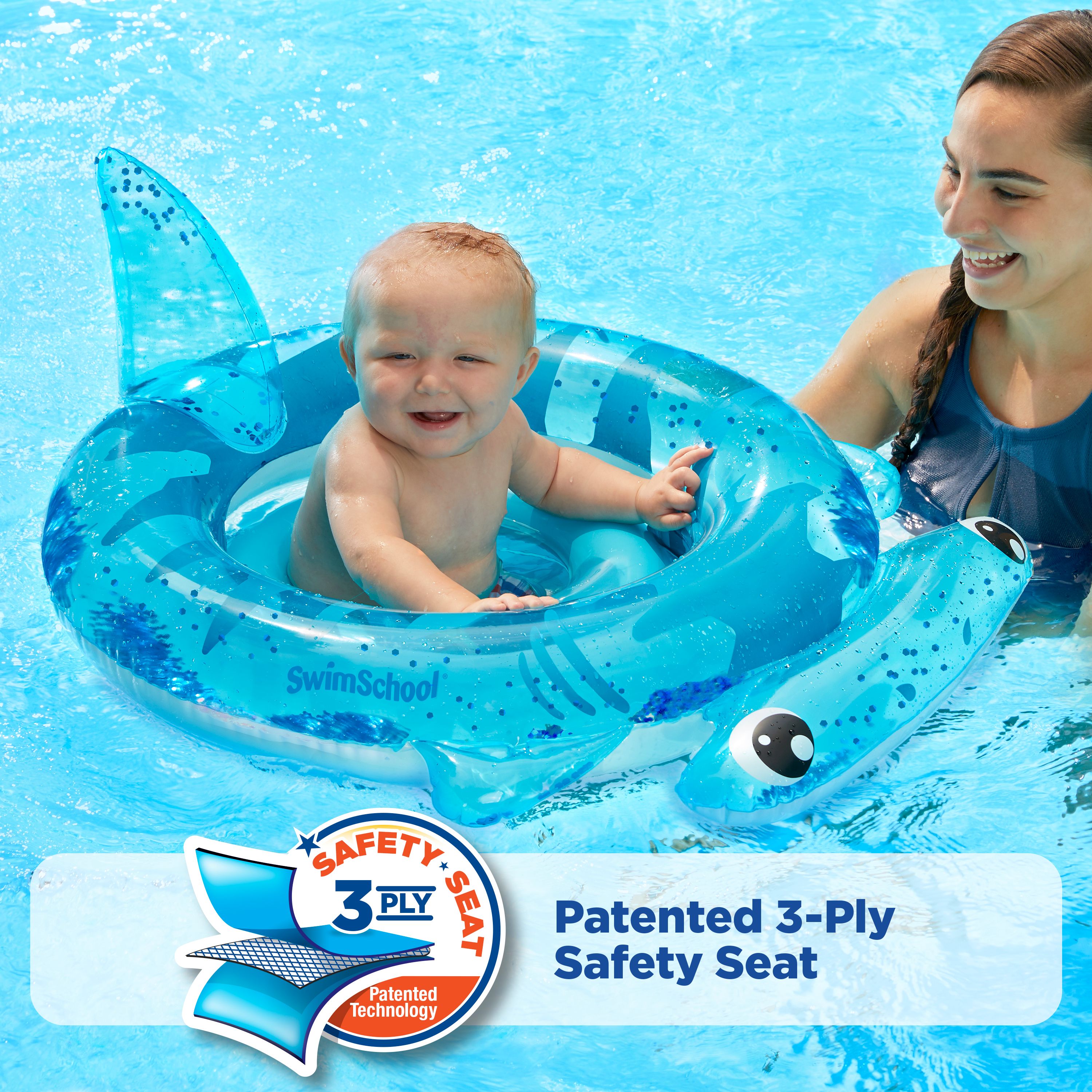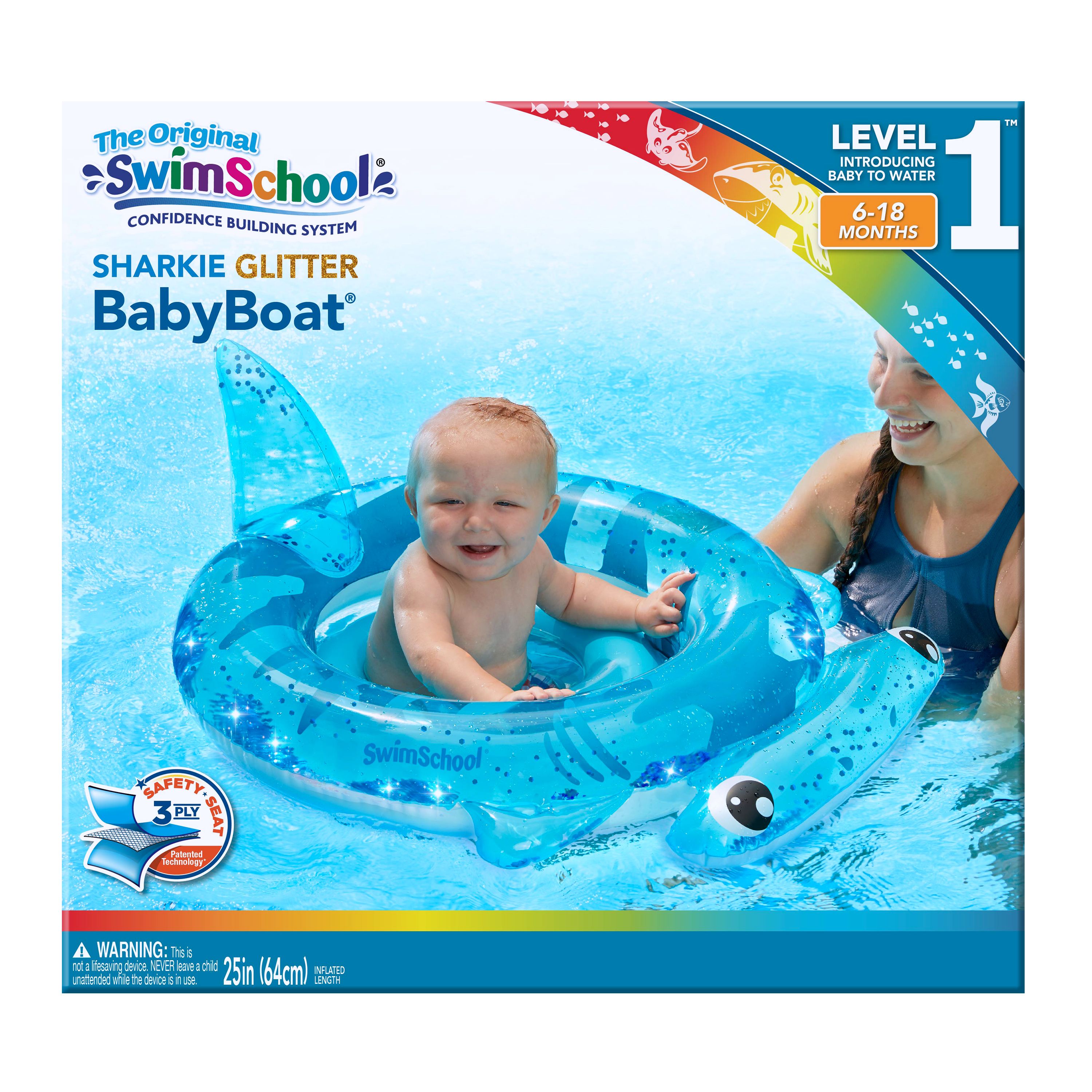 Introduce your baby to the water with the Baby Boat Sharkie by SwimSchool! This adorable baby float has glitter inside for an entertaining texture. The Baby Boat features our dual-chamber, 3-ply safety seat to increase your baby’s safety. This is perfect for on the go use and it folds easily for compact storage. Fully inflated, our float measures 29.5" or 75 cm. We recommend this for children aged 6 – 18 months. You will be able to float comfortably knowing your baby is having fun. Your child will have fun floating, splashing and getting comfortable in the water with this Baby Boat Unicorn. Please ensure you monitor your child at all times and never leave a child unattended while in or around the water. For 50 years, we’ve been in the business of relaxing, swimming, diving, and playing. Our enduring focus has been on developing luxury, performance, and recreational consumer products.