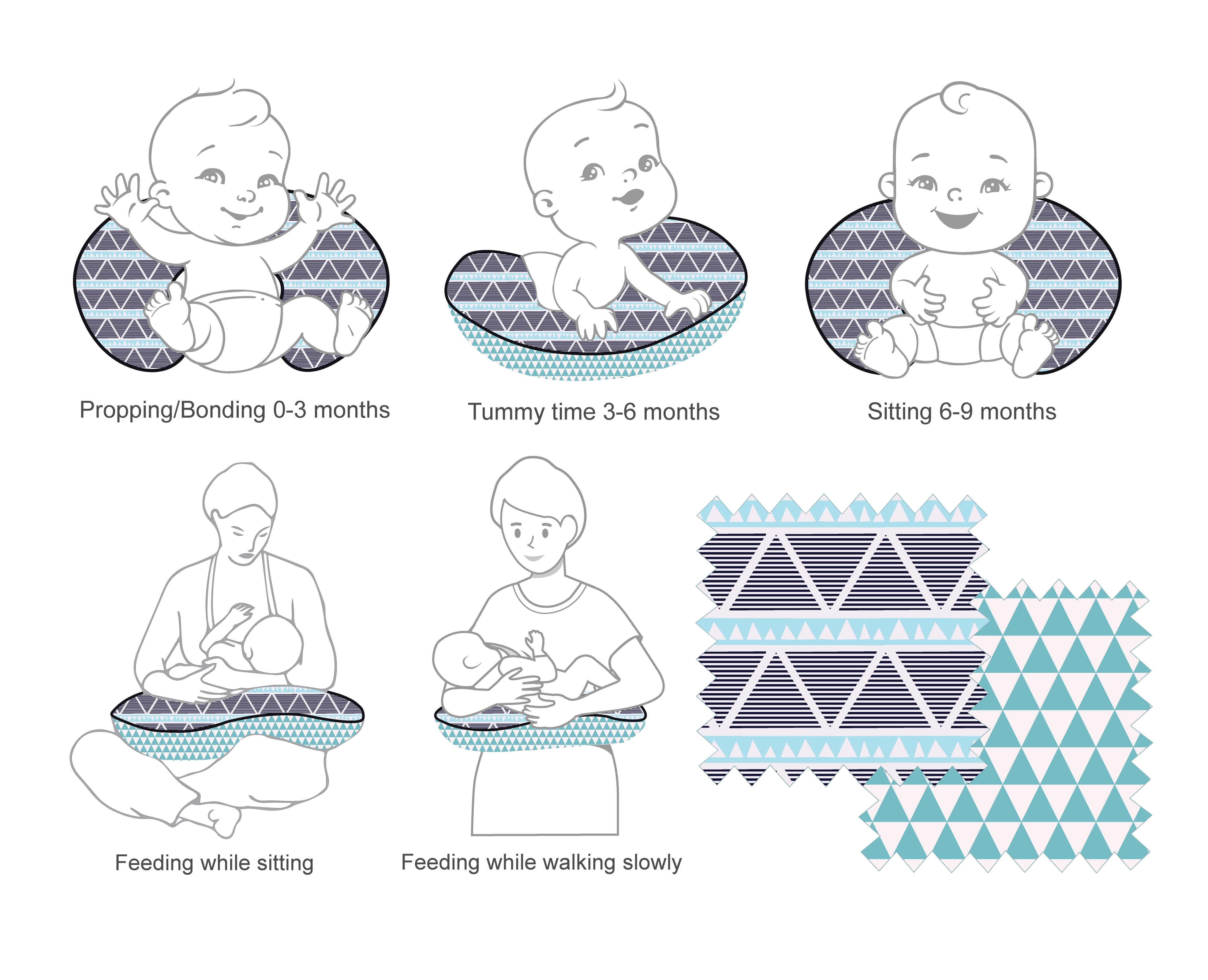 Bacati Liam Aztec Aqua/Navy Large Triangles Muslin Nursing Pillow Cover fits perfectly only Bacati