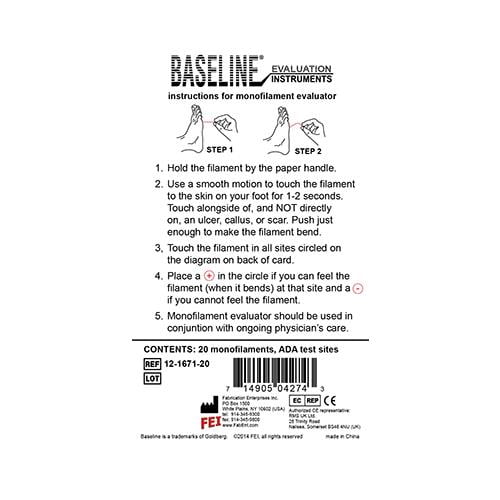 Baseline disposable individual 10 gm. monofilaments. Complete with the LEAP program testing protocol. Units bulk-packed in 20-piece blister pack.