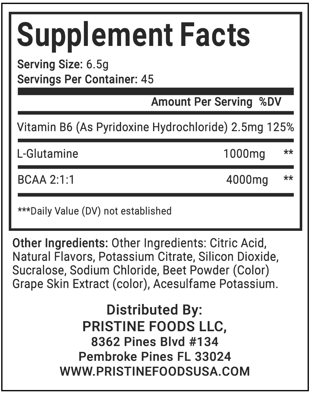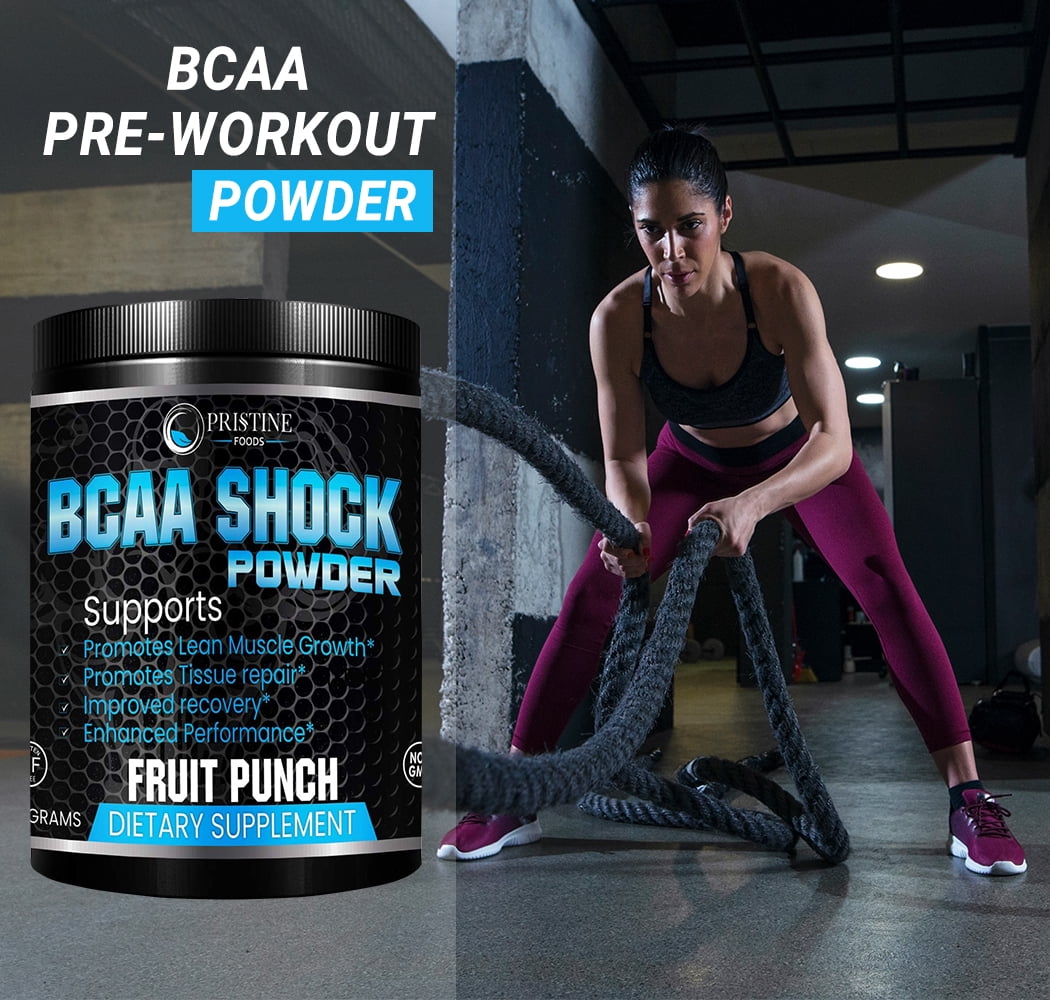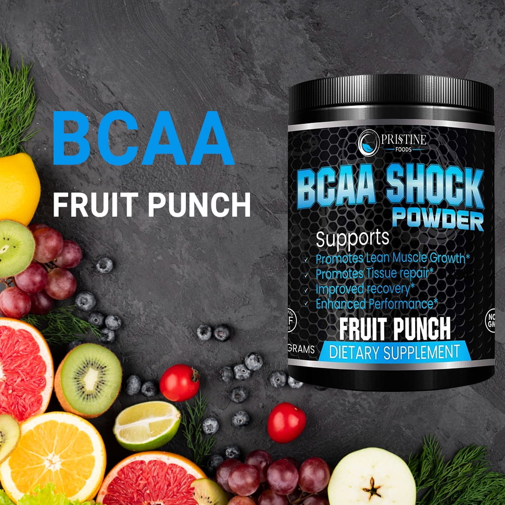 Tough workouts should lead to greatness, but too often they lead to sore muscles and low endurance. This Pristine Food BCAA Amino Shock Powder 30 Servings helps to speed up your recovery, build and tone your muscles, and increase your endurance so you can work out harder and longer than ever before. Our top-notch quality perfectly blended Pre-Workout Powder helps to recover your muscle from tons of hard work out. Make sure you never waste a workout with the optimal 2: 1: 1 ratio of high-quality BCAAs found in muscle BCAA, a perfect addition to any supplement stack for men and women. This muscle-building supplement comes with a great taste of Fruit Punch flavor so that you can get the perfect taste of pure mother nature. Our high potency amino acids supplement boosts up your energy and keeps you fit all day long.