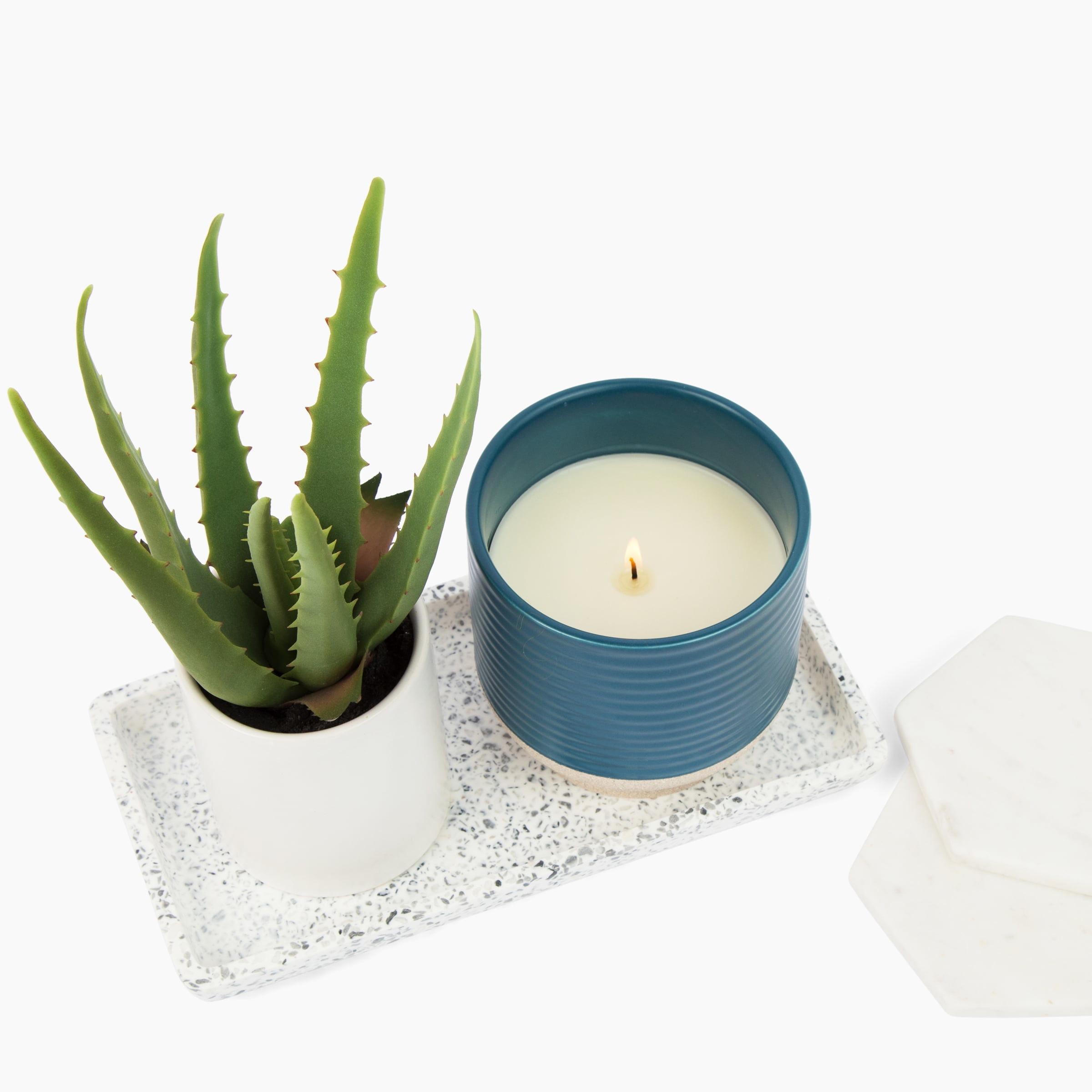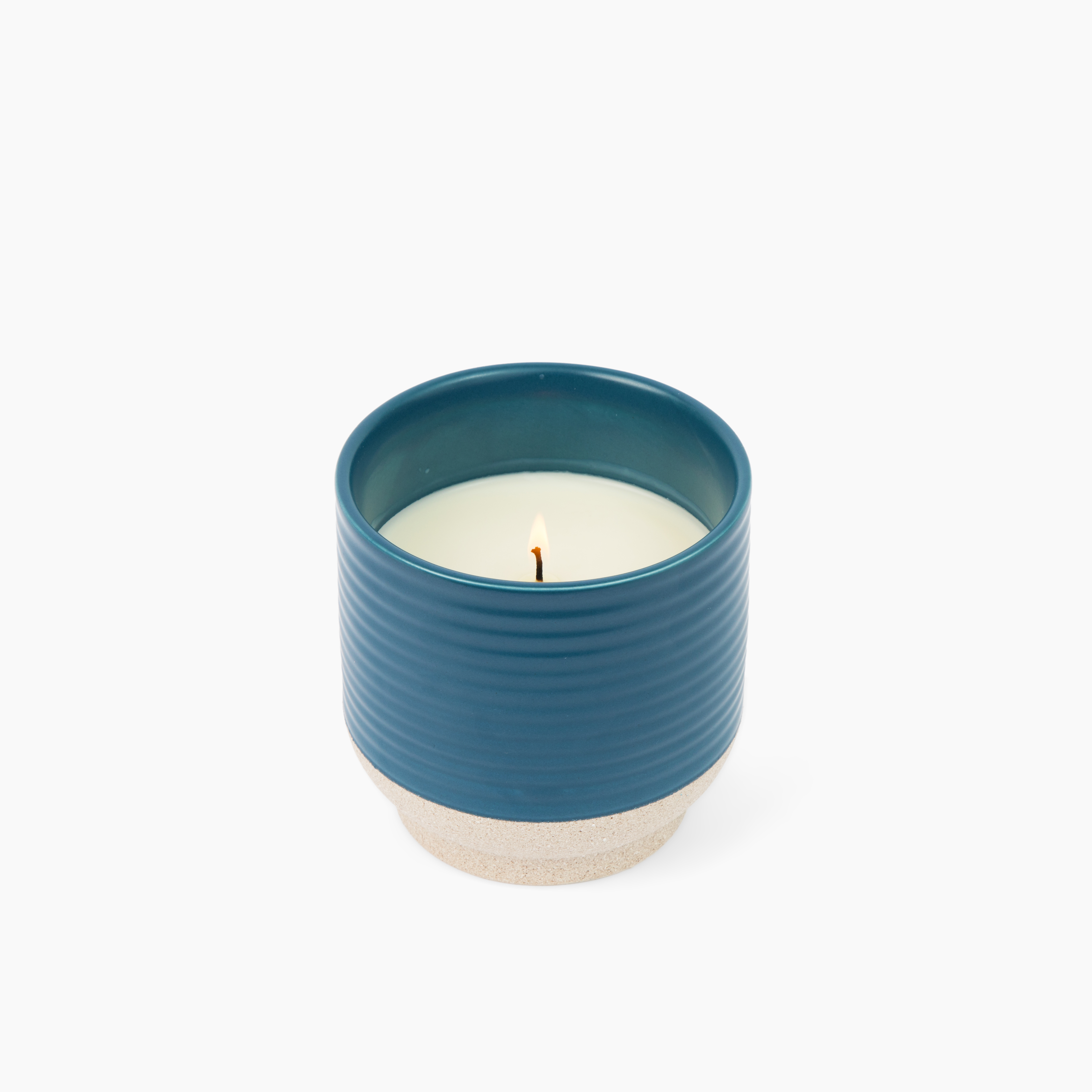 Each Better Homes & Gardens Blue Fern & Citrus 16oz scented 2-wick jar candle gives off a warm, golden light and fills the room with indulgent fragrances of citrus, green, and amber. The ceramic vessel is filled with a premium wax blend. Wonderful to use in a variety of rooms, it complements your existing décor for versatile style, and is a great addition to any mantle or tabletop.