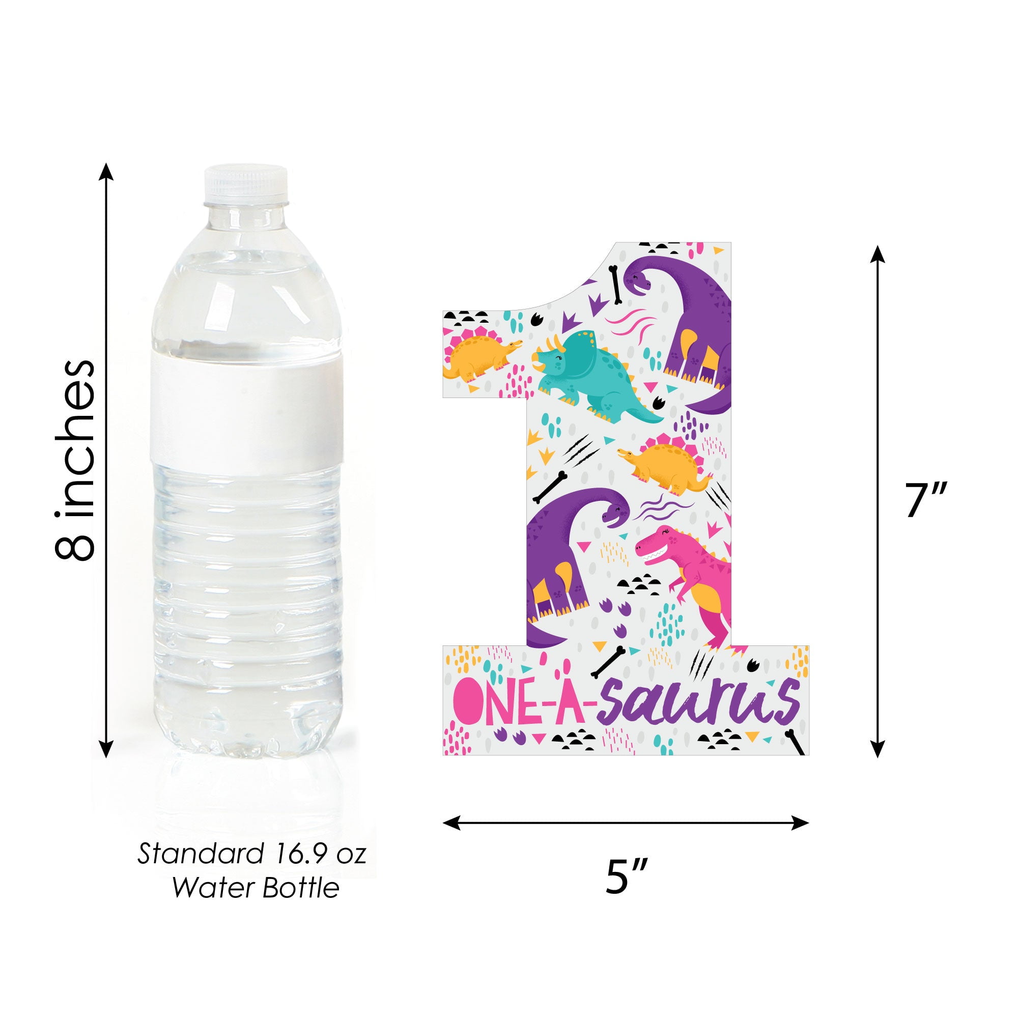 - DIY PARTY SUPPLIES: 1st Birthday Roar Dinosaur Girl essentials include 20 cut outs that coordinate with the ONEasaurus Pink Dino theme. Set of 20 1st Birthday shapes SIZE 20 – "One-a-Saurus" 1-Shaped Cut Outs Measure 5" x 7". The unique design and size makes these party decorations an impressive addition to any First Birthday Party.