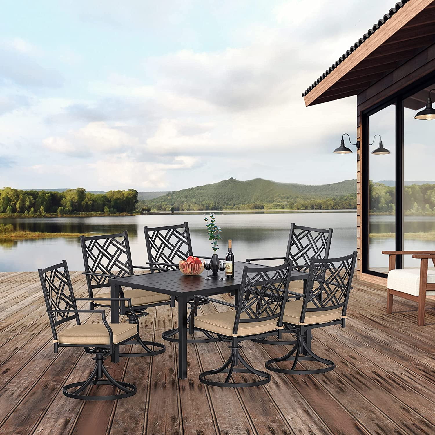 Bigroof Rectangle patio dining table with 1.57" hole.Bring you a wider desktop . Use it with our chairs, bring you a wonderful life experience!