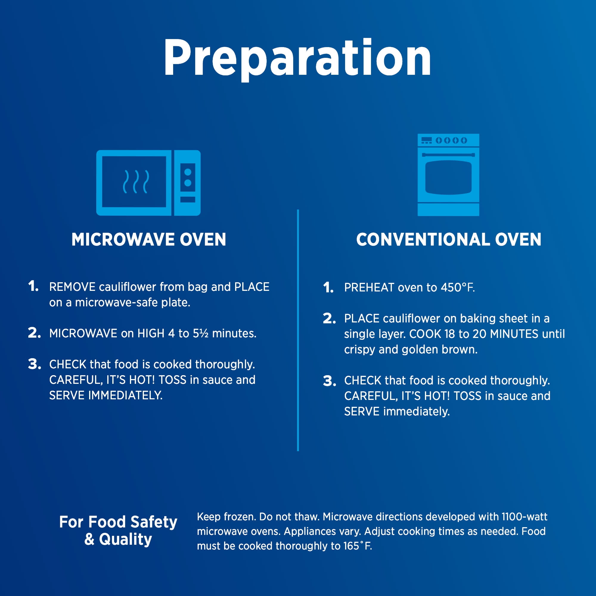 - Flash frozen cauliflower florets lock in fresh flavor