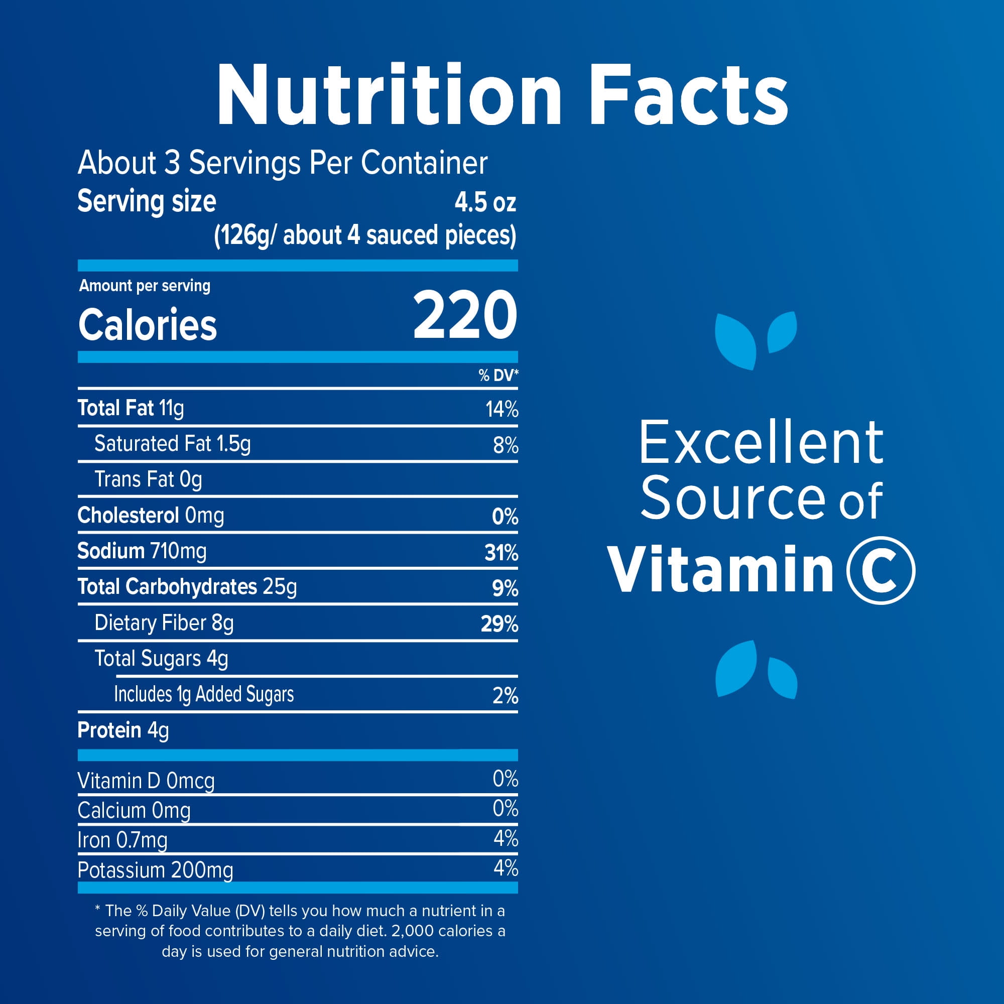 Birds Eye Buffalo Style Cauliflower Wings frozen vegetable makes it easy for the whole family to enjoy their vegetables. These flash frozen breaded cauliflower florets were specially selected to provide you and your family with quality vegetables. An included sauce pouch provides bold buffalo-style flavor to the frozen cauliflower. Your family deserves the best when it comes to eating vegetables, and that’s why there are no artificial flavors added. Enjoy these frozen cauliflower florets as a tasty snack, or serve them as an appetizer before dinner to add a serving of vegetables. Preparation of the breaded cauliflower is easy; cook them in the microwave in less than 6 minutes or in the oven in 20 minutes or less, then toss them in sauce. Keep the 13.5 ounce bag of frozen cauliflower florets fresh in the freezer until ready to enjoy. It’s good to eat vegetables, so Birds Eye makes vegetables good to eat.
