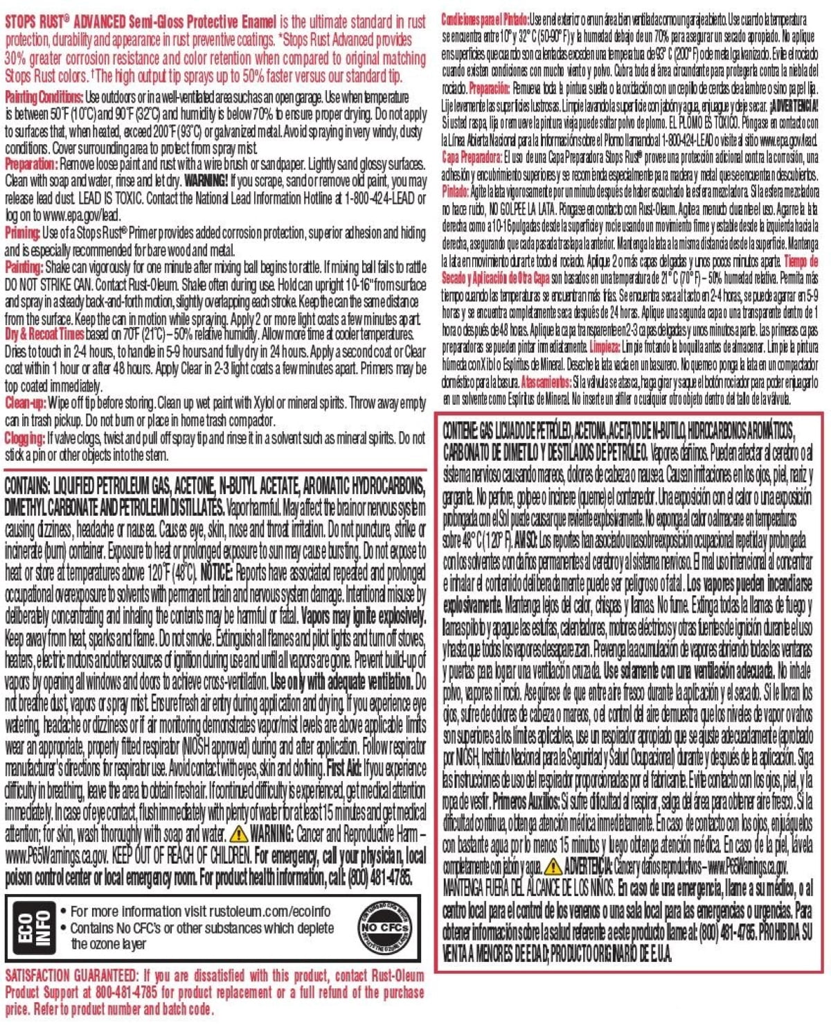 Black, Rust-Oleum Stops Rust Advanced Semi-Gloss Spray Paint, 12 oz: Rust-Oleum Stops Rust Advanced Spray Paint is the ideal choice for protecting metal surfaces. The Advanced formula employs new technology to provide 30% greater corrosion resistance and color retention when compared to original Stops Rust. The high output tip sprays 50% faster for quicker project completion and the durable finish will keep your project looking great indoors or out. Stops Rust Advanced is next generation protection.
