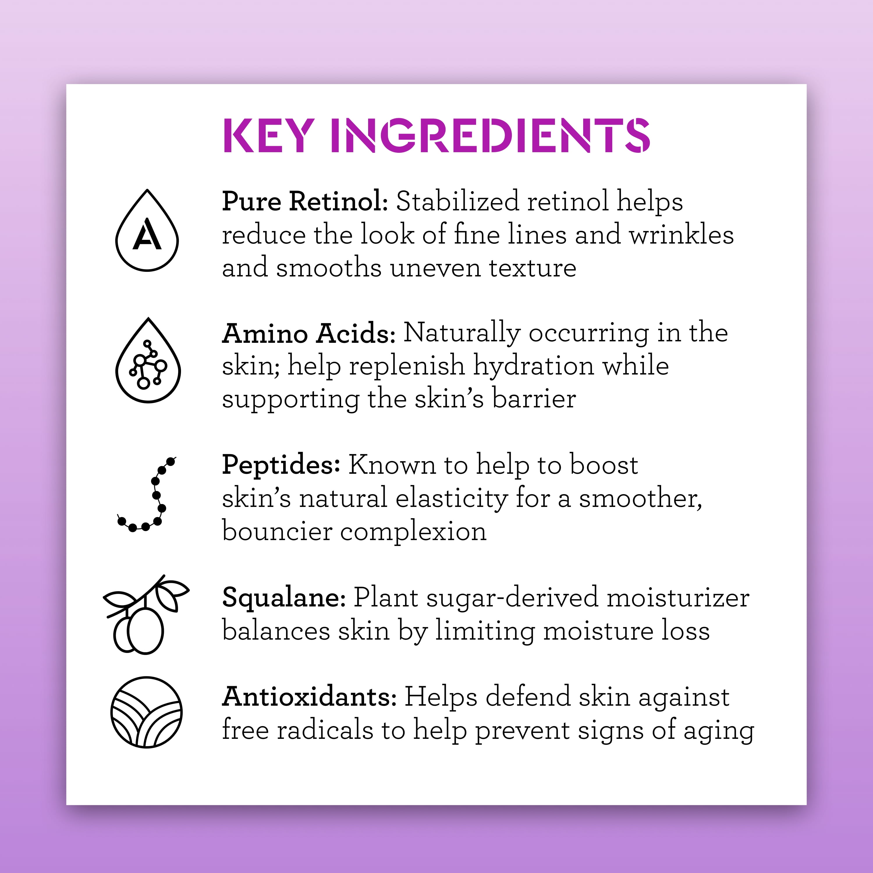 This silky moisturizer powered by pure retinol visibly diminishes fine lines and counteracts environmental damage – all while delivering intense hydration.