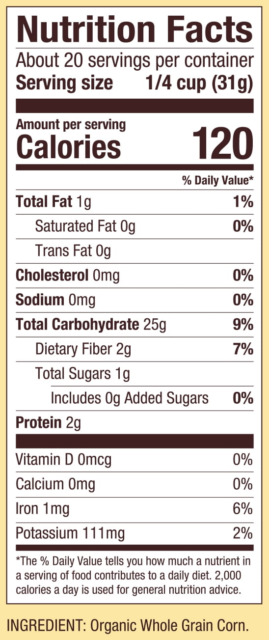 - Made with stone ground whole organic corn kernels