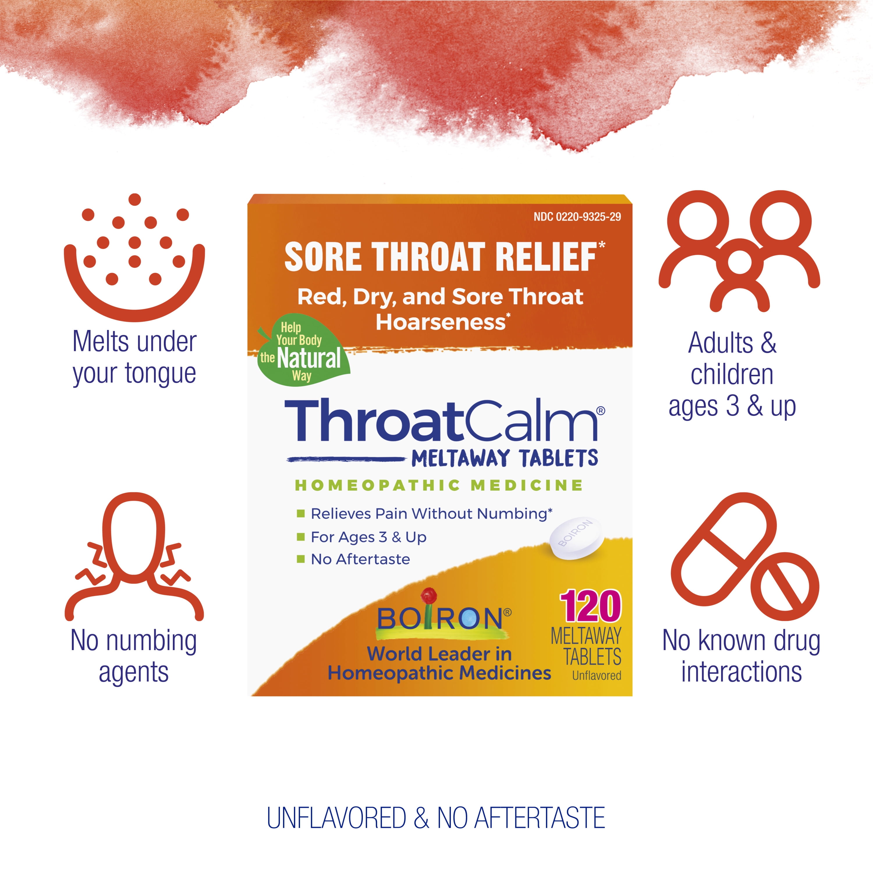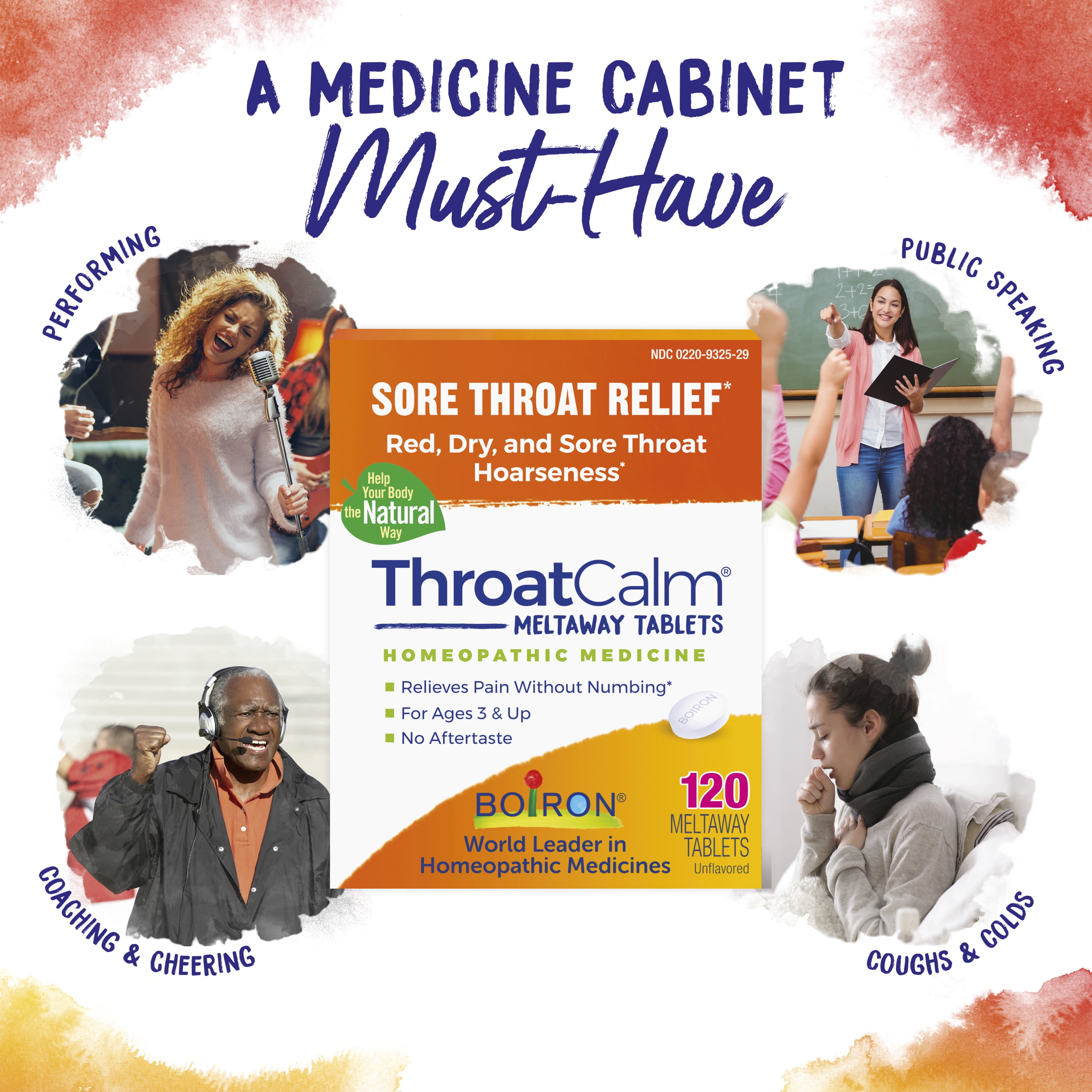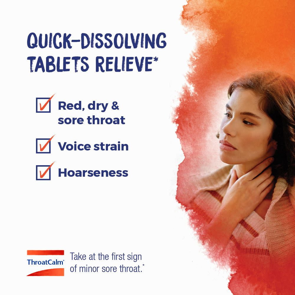 Instead of merely numbing pain, Boiron ThroatCalm tablets relieve minor sore throat associated with colds and hoarseness from overused vocal cords.* The homeopathic tablets dissolve under the tongue, causing no additional pain to swallow. (BoironUSA.com)*Claims based on traditional homeopathic practice, not accepted medical evidence. Not FDA evaluated.