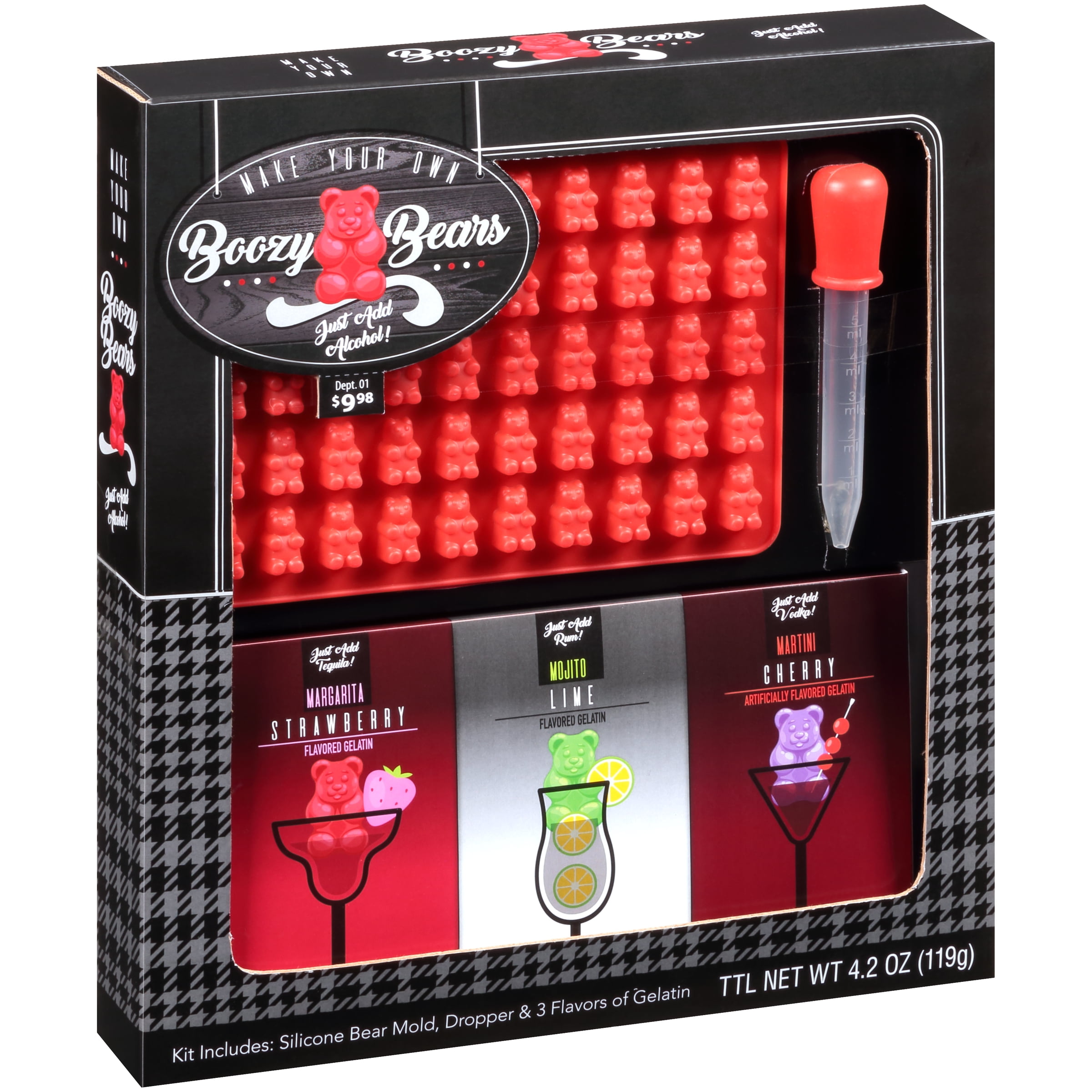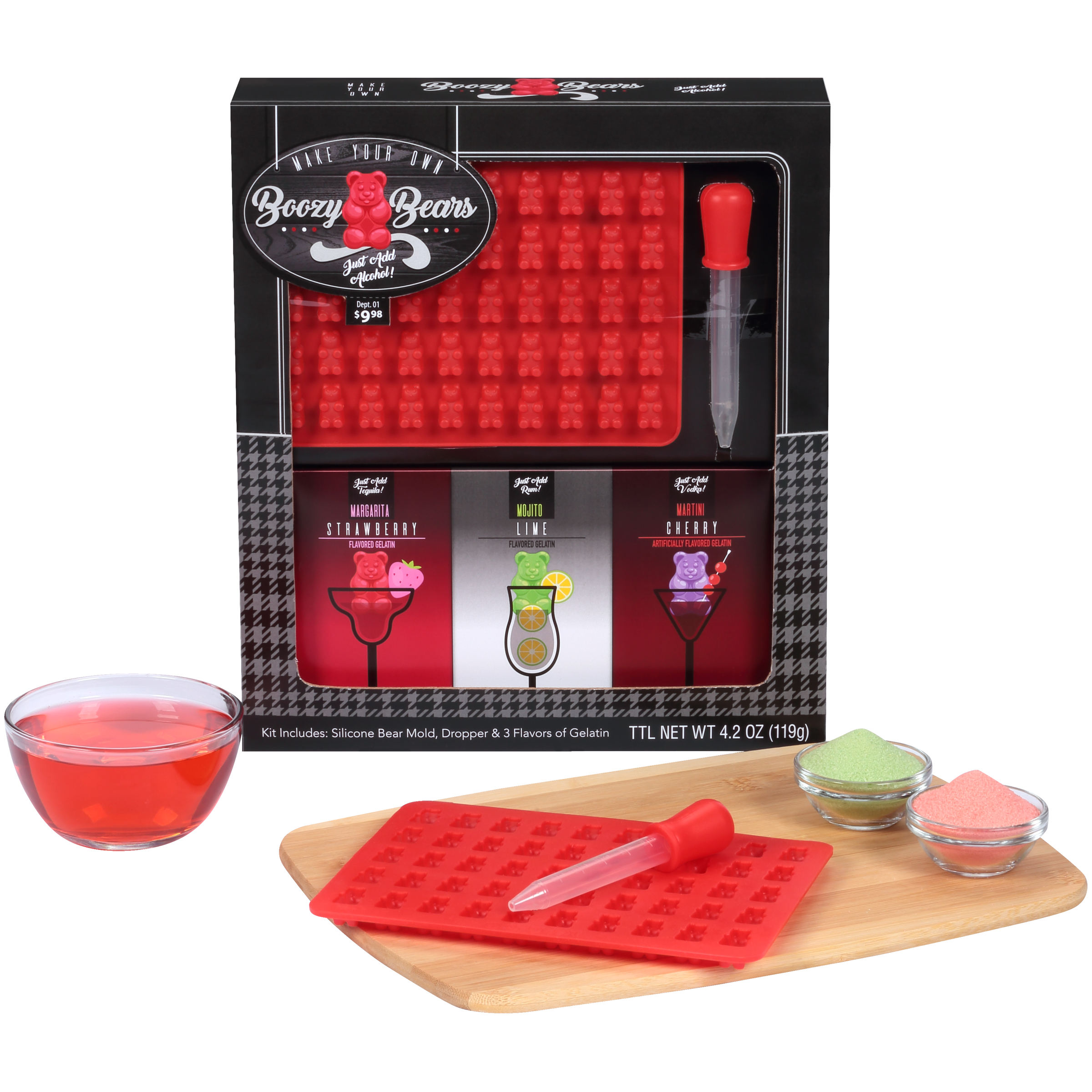 - Kit includes: 1 silicone bear mold, 1 dropper, 3 flavors of gelatin