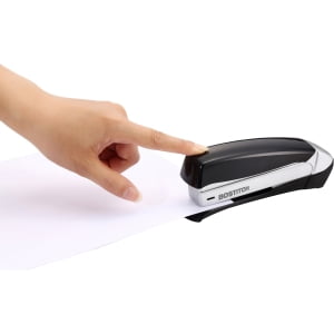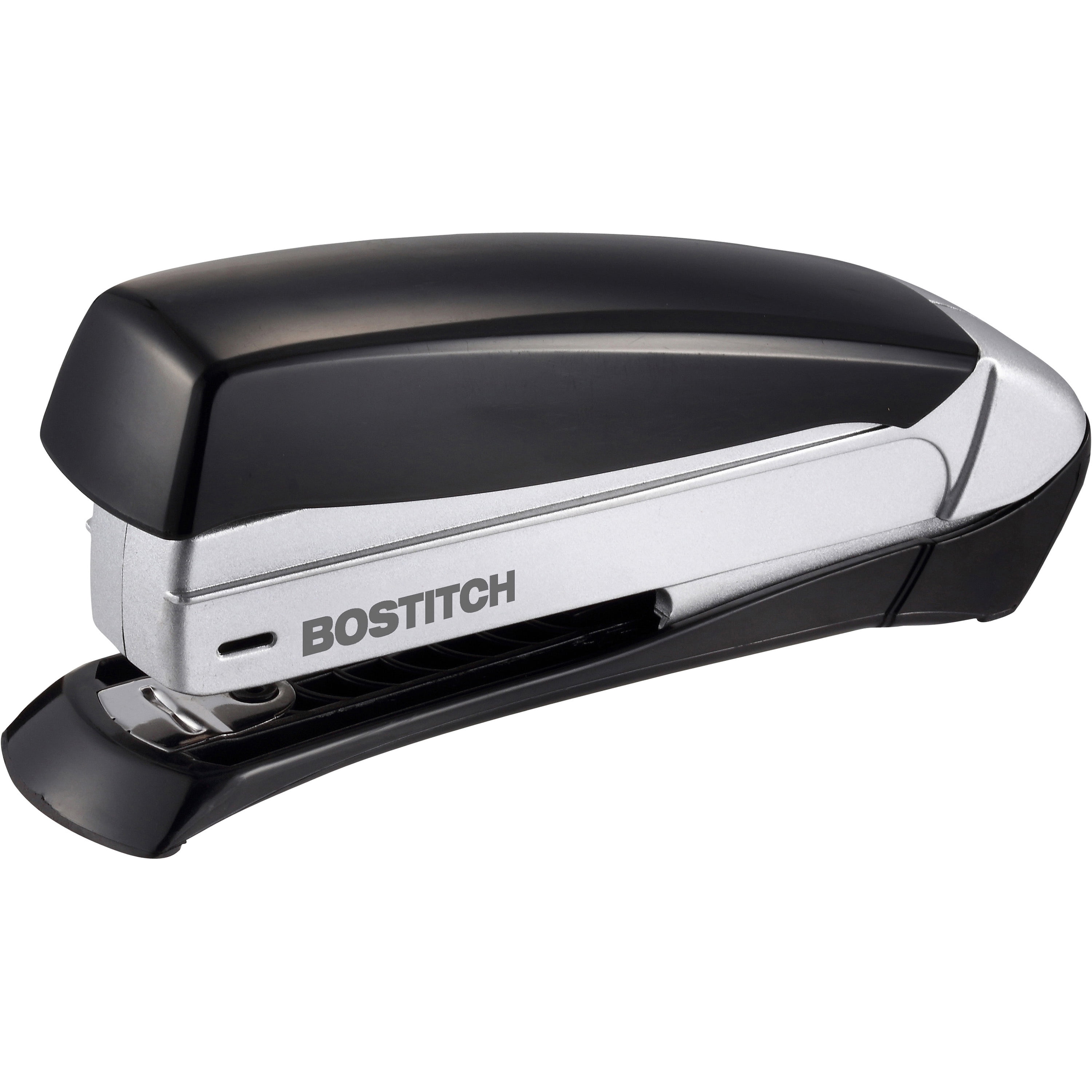 Make stapling 80 percent easier with Bostitch One-Finger, spring-powered technology. Using just the push of a finger, effortlessly staple up to 20 sheets of paper – jam-free. With smooth edges that fit perfectly in the curves of your hand, the stapler provides comfortable stapling by finger or by hand. Metal housing delivers long-lasting stapling performance. Nonslip base provides stability and tabletop protection. Full-strip stapler holds up to 210 standard staples. A pop of color not for you? No worries!
