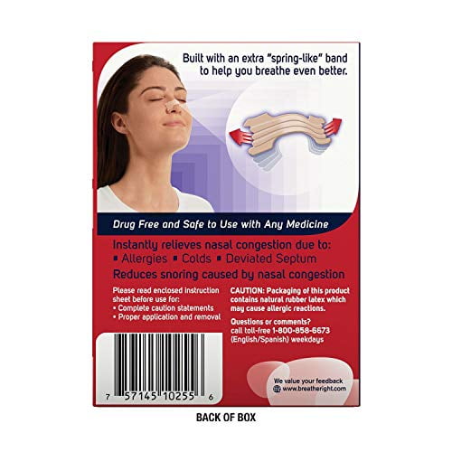 The way nasal strips (or nose strips or breathing strips, as some people call them) work is relatively simple. Within each Breathe Right nasal strip are flexible ‘spring-like’ bands. On the underside is a special adhesive that, when placed properly on the nose, gently sticks to the area right above the flare of each nostril. As the bands attempt to straighten back to their original shape, they gently lift the sides of the nose and open the nasal passages, providing immediate and continual relief. Which helps you breathe better – with no medicine and no waiting.