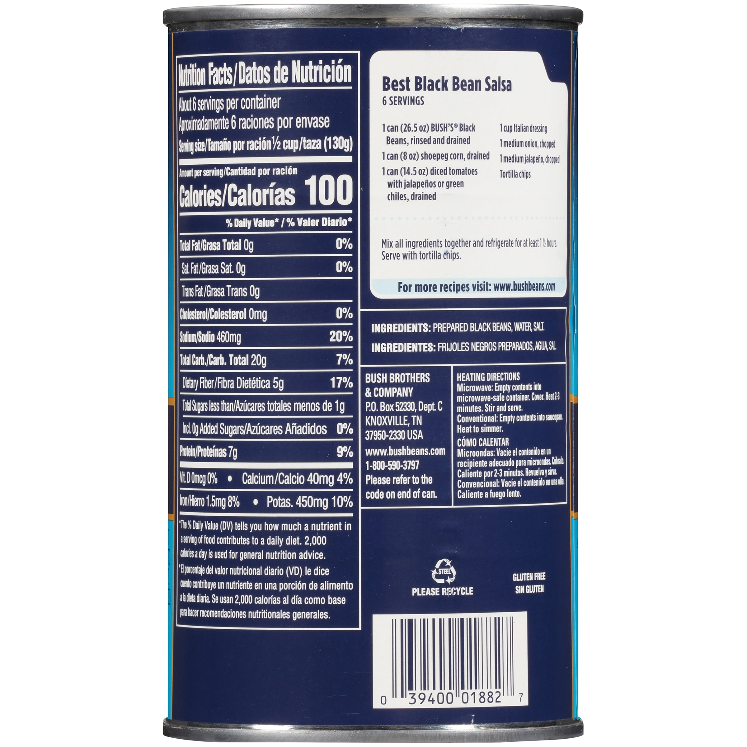 Are Bush’s Black Beans a super food? Well, we sure think they’re super. And they’ve got 7g (9% DV) of protein, 5g (17% DV) of fiber, are super low in fat, are cholesterol free, gluten free and have only 100 calories in a serving.