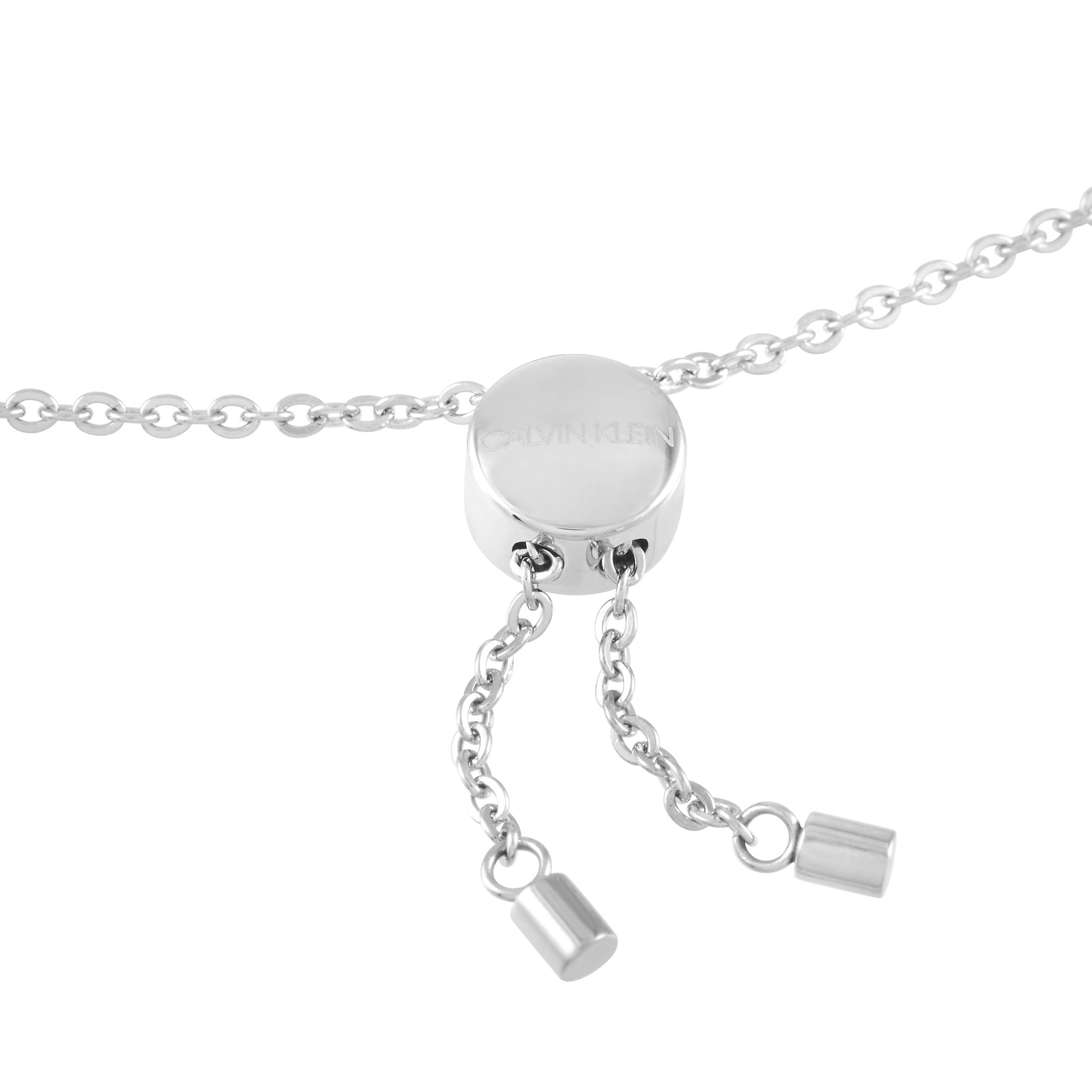 This Calvin Klein Rocking Necklace features a delicate stainless steel chain that is 28 inches long with a cube pendant set with Gray Swarovski Crystals. The pendant measures 0.25 inches by 0.25 inches.This necklace is presented in brand new condition and includes the manufacturer’s box and papers./r/nReference Number: KJ9CAN040100