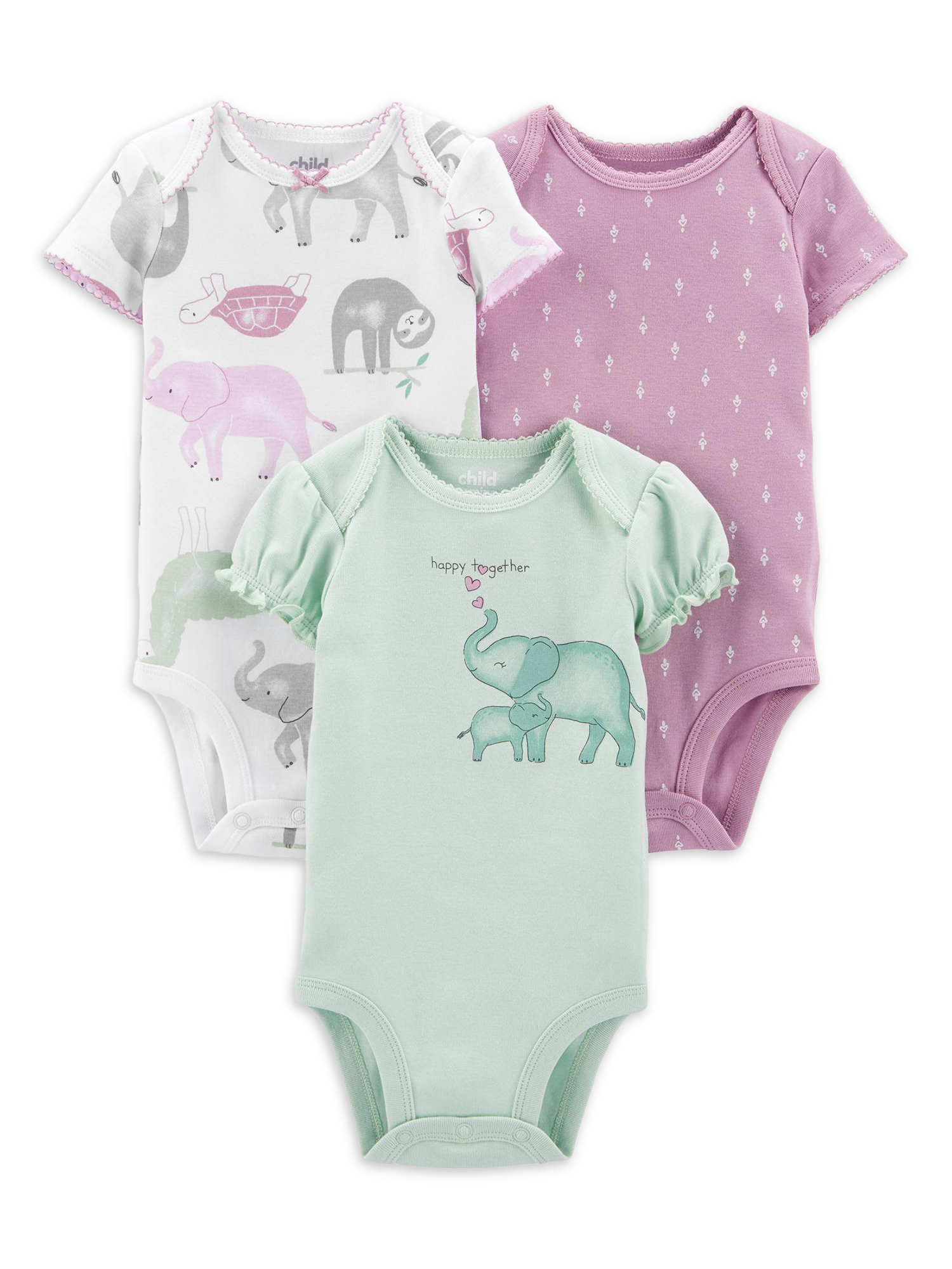- Bodysuits: short sleeves; overlap shoulders for easy over the head; snaps at the legs for easy changes; strong snaps keep up with wear, wash, repeat
