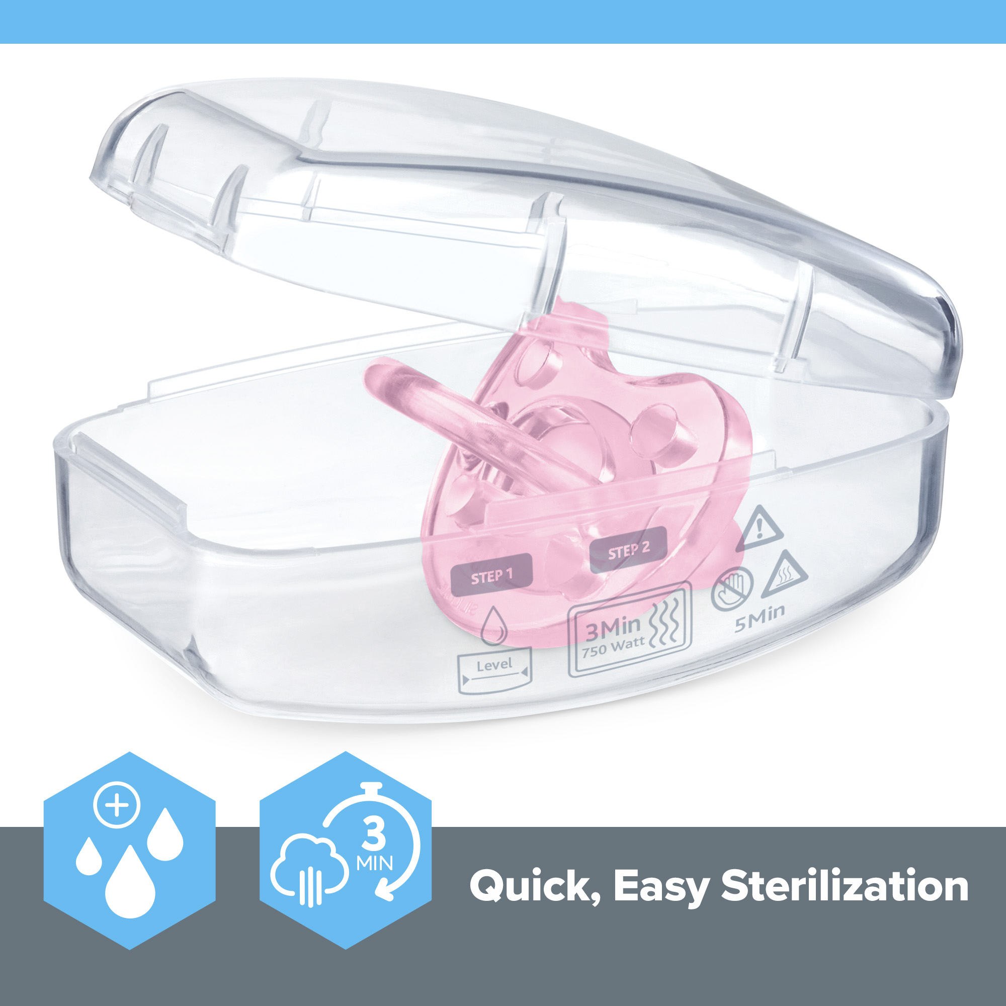 - Included reusable case lets you sterilize pacifiers in 3 minutes