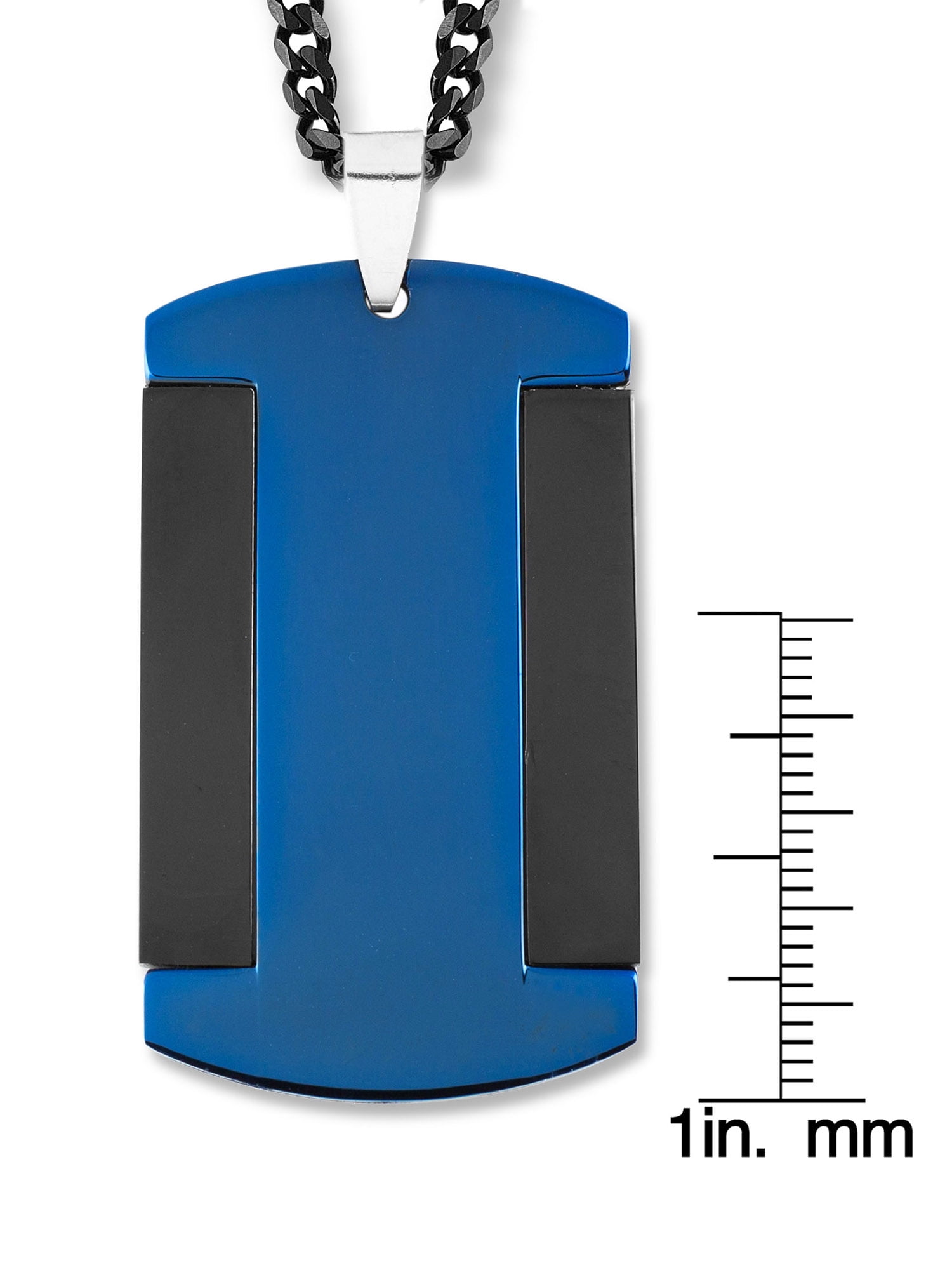 The stainless steel high polished pendant complements the blue plated dog tag and will become the perfect accent for any occasion.