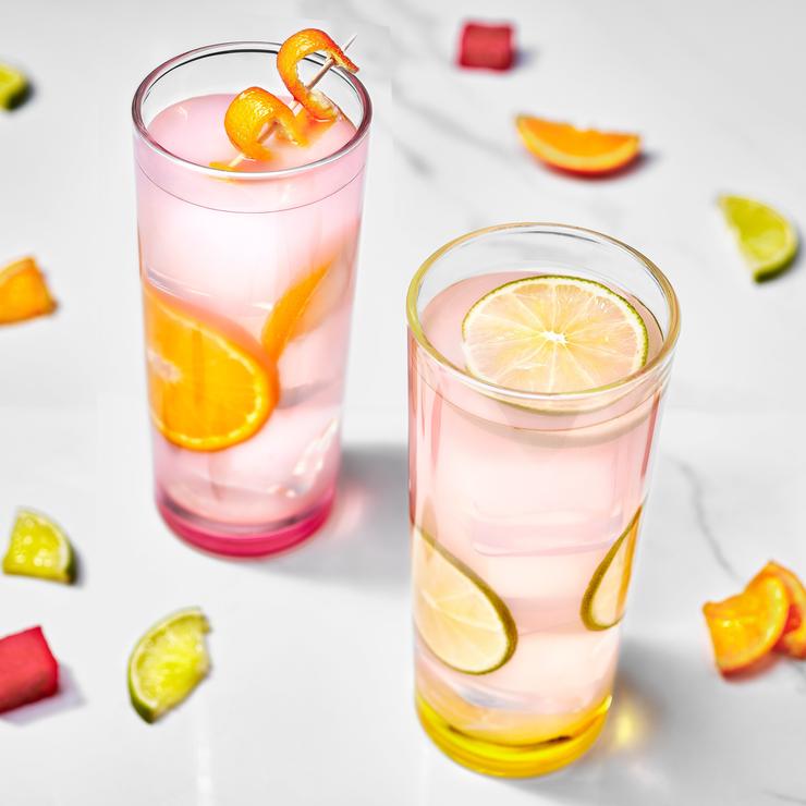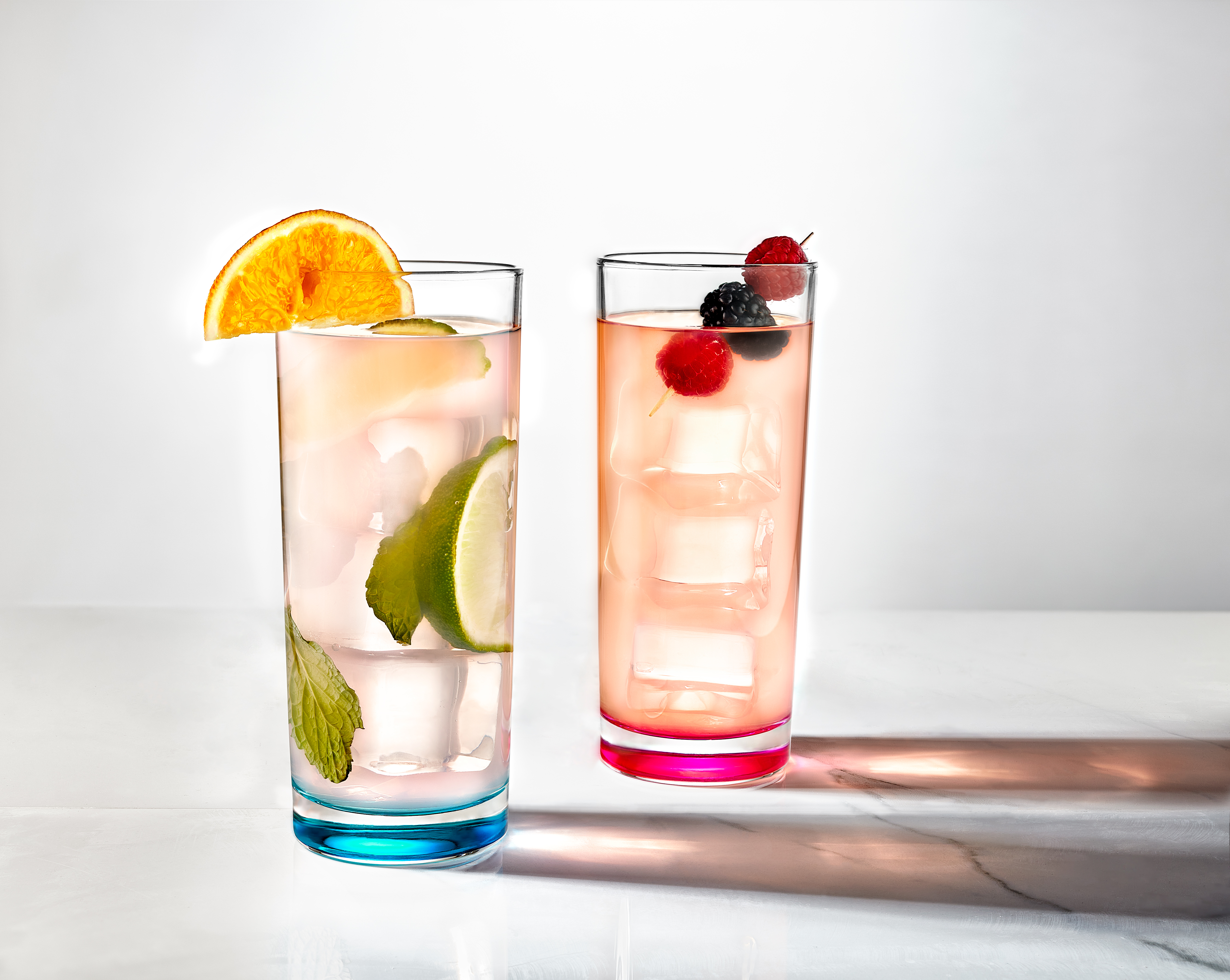 JoyJolt Colored Highball Drinking Glasses 11.5 oz, Set of 6 Vibrant Colors will upgrade your table and any drink. With a colored bottom, these drinking glasses take on the hue of the base and bring festivity and cheer to any meal!