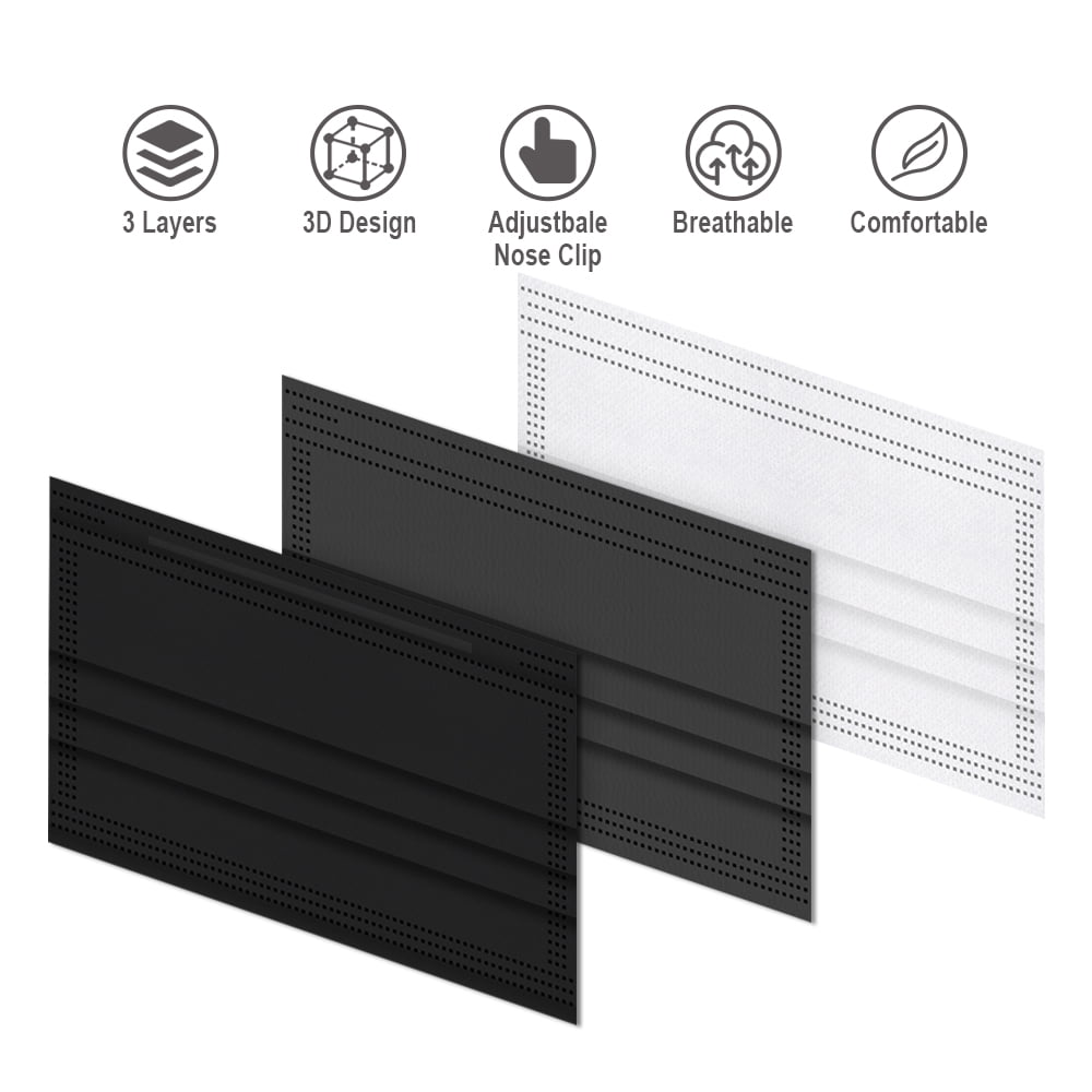 Comix 3 Layers Face Masks, Pack of 100. Color: Black. Size: L6.89” x W3.76” Suitable to use in public areas, offices, and schools for adults, women, men, and teenagers: This mask Is not intended for medical use and only for one use.