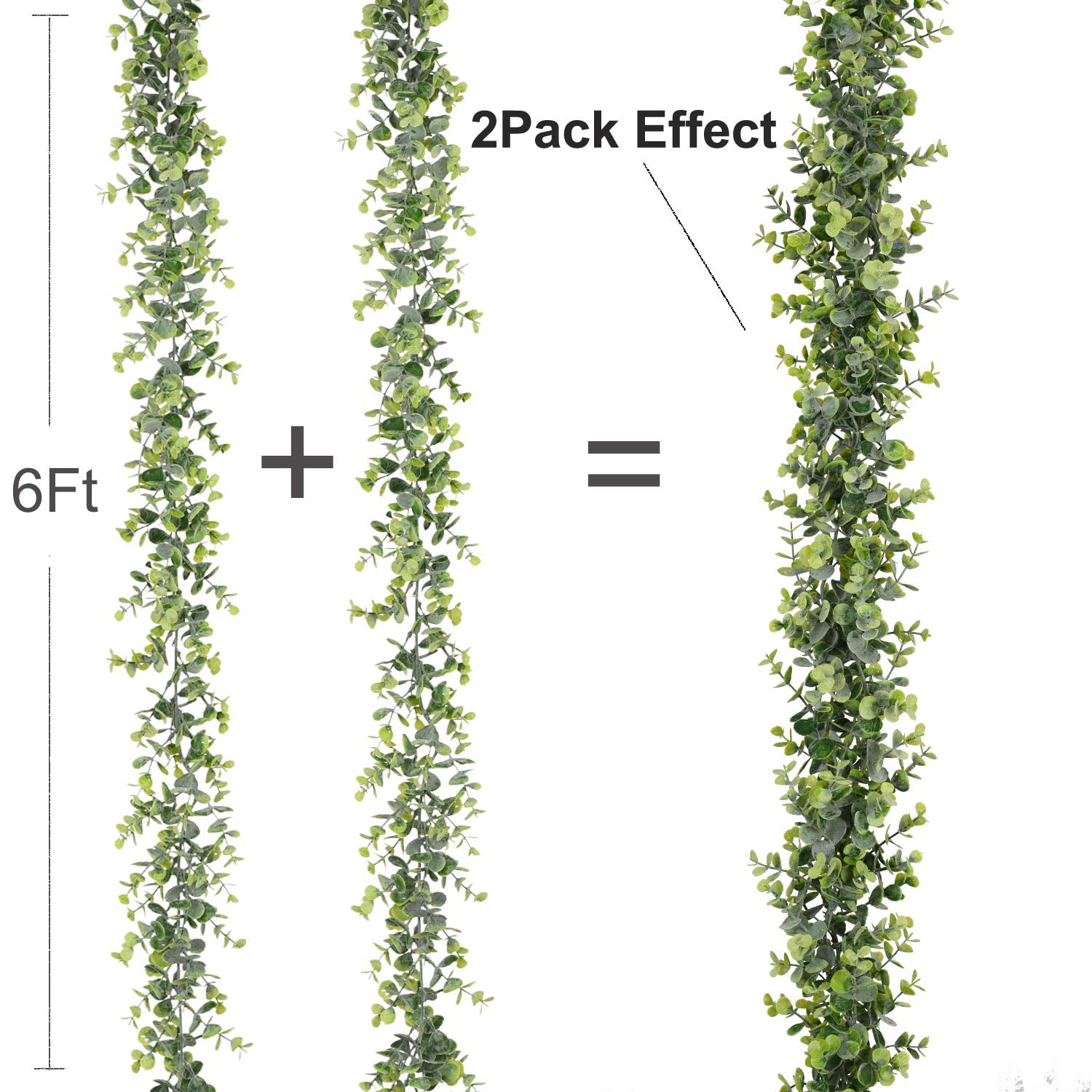 Coolmade Quantity: 2 Pack Large eucalyptus leaves faux eucalyptus garland , Each pack with 134 Pcs large fake eucalyptus leaves, total 268 Pcs Eucalyptus Leaves,This eucalyptus garland has many branches,Looks very realistic and Three-dimensional. Each Artificial eucalyptus Leaves Garland is appr. 6 Ft in length /Each. Material: plastic. Color: Green,Light dusting. Especially suitable for Outdoors,Under the sun,Window,Wedding arch,Wedding background,Table. Faux eucalyptus garland is waterproof and outdoor UV resistant. So it can keep a fresh look in outdoor or indoor. Dress up this garland with silk flowers to sit over the edge of a table or sign. Perfect to accent chairs, arches, backdrops,hallways, backdrops and more for DIY event centerpieces. Perfect for any Wedding, Special Occasion or Home Decor Eucalyptus vines is vintage rustic style, Rustic eucalyptus greenery is perfect for wedding arch and home decor. Handmade item artificial vine leaves, Looks like real preserved eucalyptus garland plant but won’t wilt, fade or get easily damaged. Each leaf is hand assembled and you can pop them right back on if some of the leaves fall.