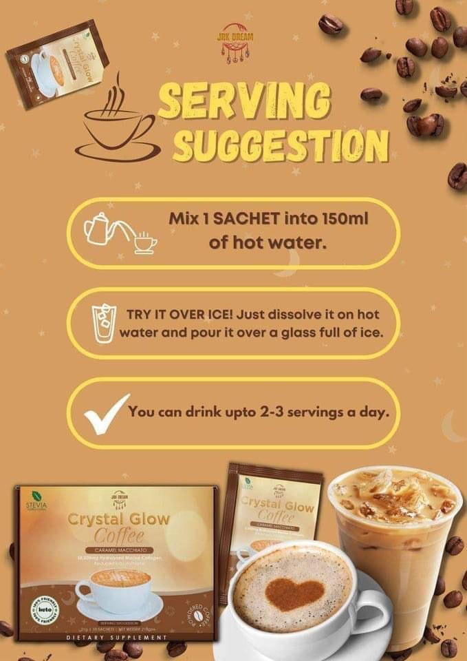 ? ?Crystal Glow Coffee CARAMEL MACCHIATO 50,000mg Hydrolyzed Marine Collagen Mix, 10 Sachets