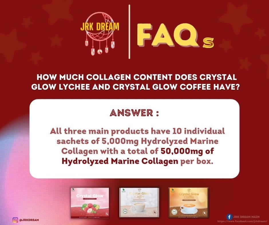 *Each sachet contains 5,000mg of Hydrolyzed collagen, total of 50,000mg per box.Â