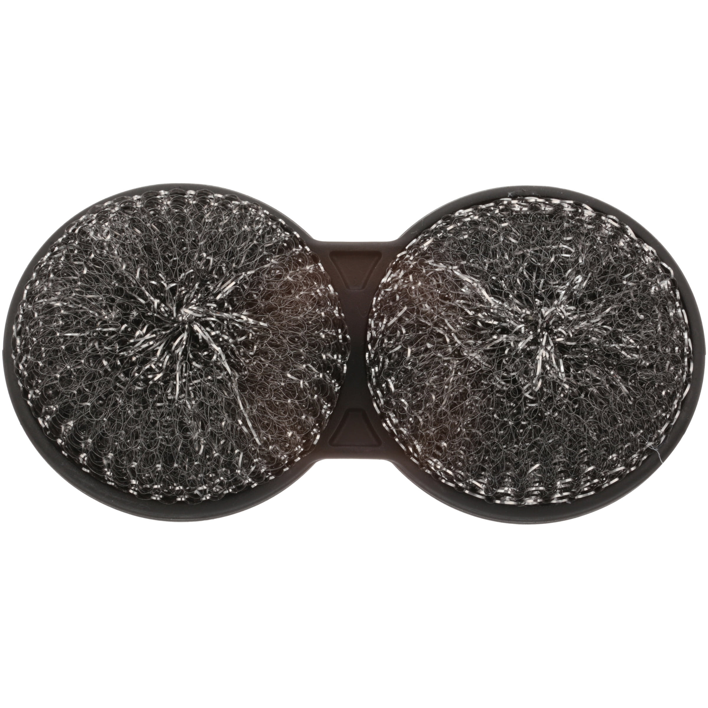 - Dual coiled stainless steel scouring pads are tough and reusable to hold up to the most aggressive scouring