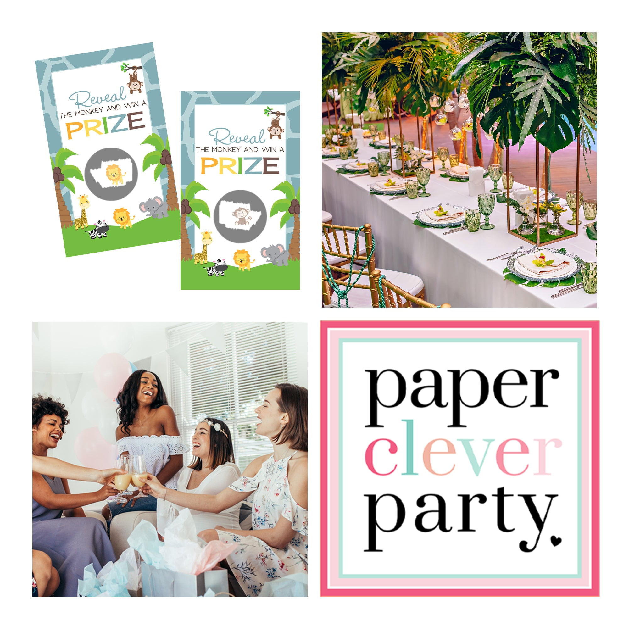 - USA Made: Entertain your guest with this pack of cute jungle baby shower scratch off games by Paper Clever Party designed, printed, and hand-packed with love in the USA.