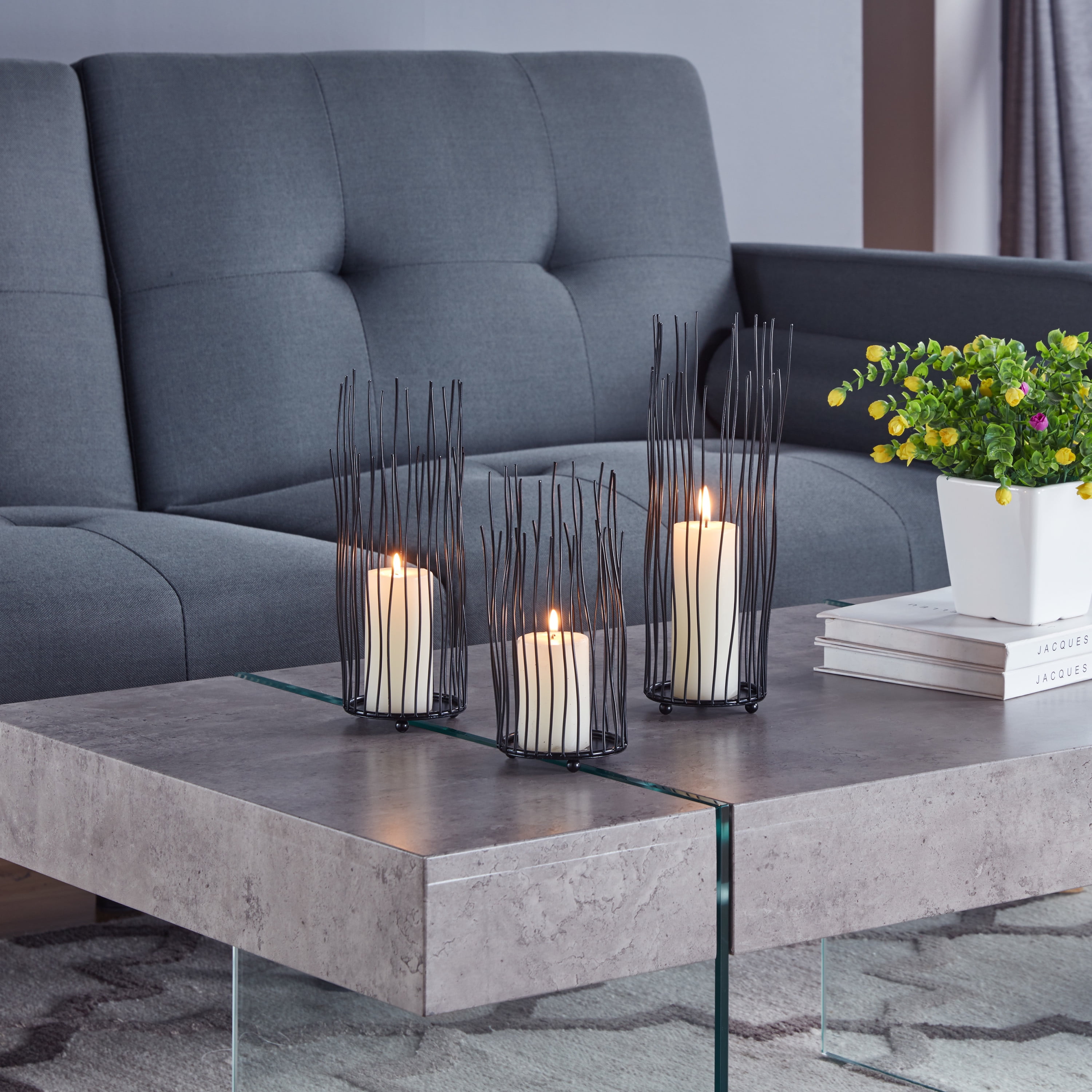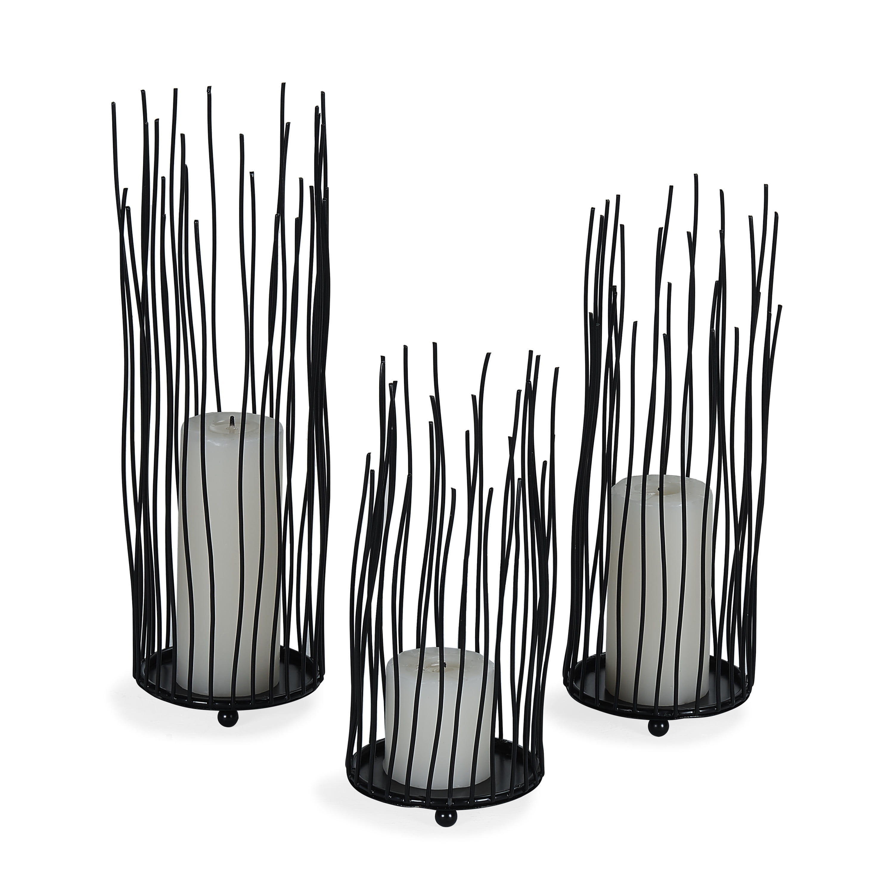 Danya B. nature inspired candle-holder set features an organic willow design will add a warm touch to your home décor. Finished in black . For use with pillar candles (not included). Danya B. is a registered trademark of Danya B Inc.